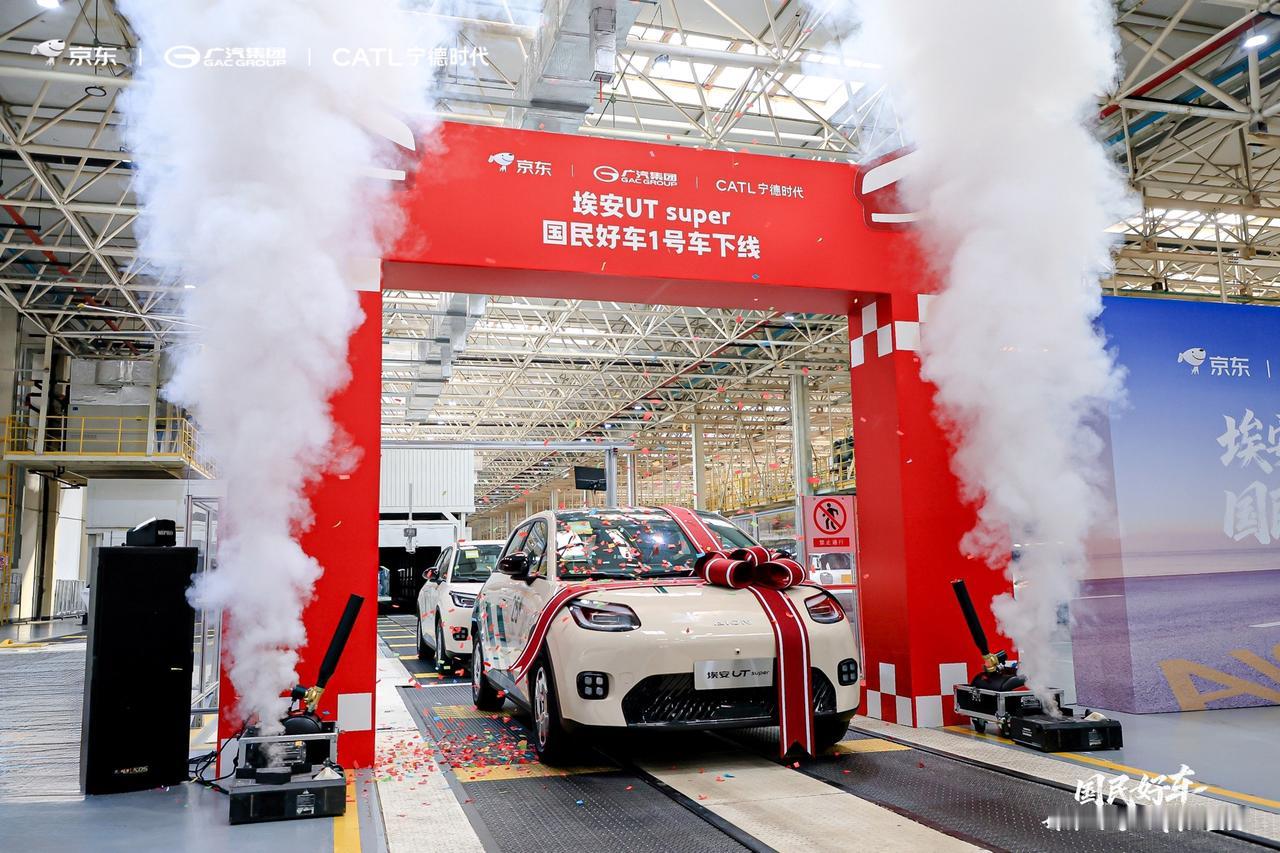 “国民好车”埃安UT super 1号车正式下线! 埃安UT super不仅是京东、广汽集团与宁德时代三方协同推出的一款“国民好车”,更是三方携手对新能源汽车产业从用户洞察,到车辆研发、制造,再到车辆交付、补能、售后的全链条重构,为广大用户带来了全新的新能源汽车消费体验。作为“国民好车 好车不贵”理念的倡导者,京东不仅以采销的专业眼光严选车型与产业链伙伴,更凭借全链路生态服务能力,为消费者提供超越车辆本身的一站式体验。埃安UT super将于11月9日正式发布,目前在京东搜索“国民好车”已可预约订购,并享受E卡补贴、免费洗车等权益。