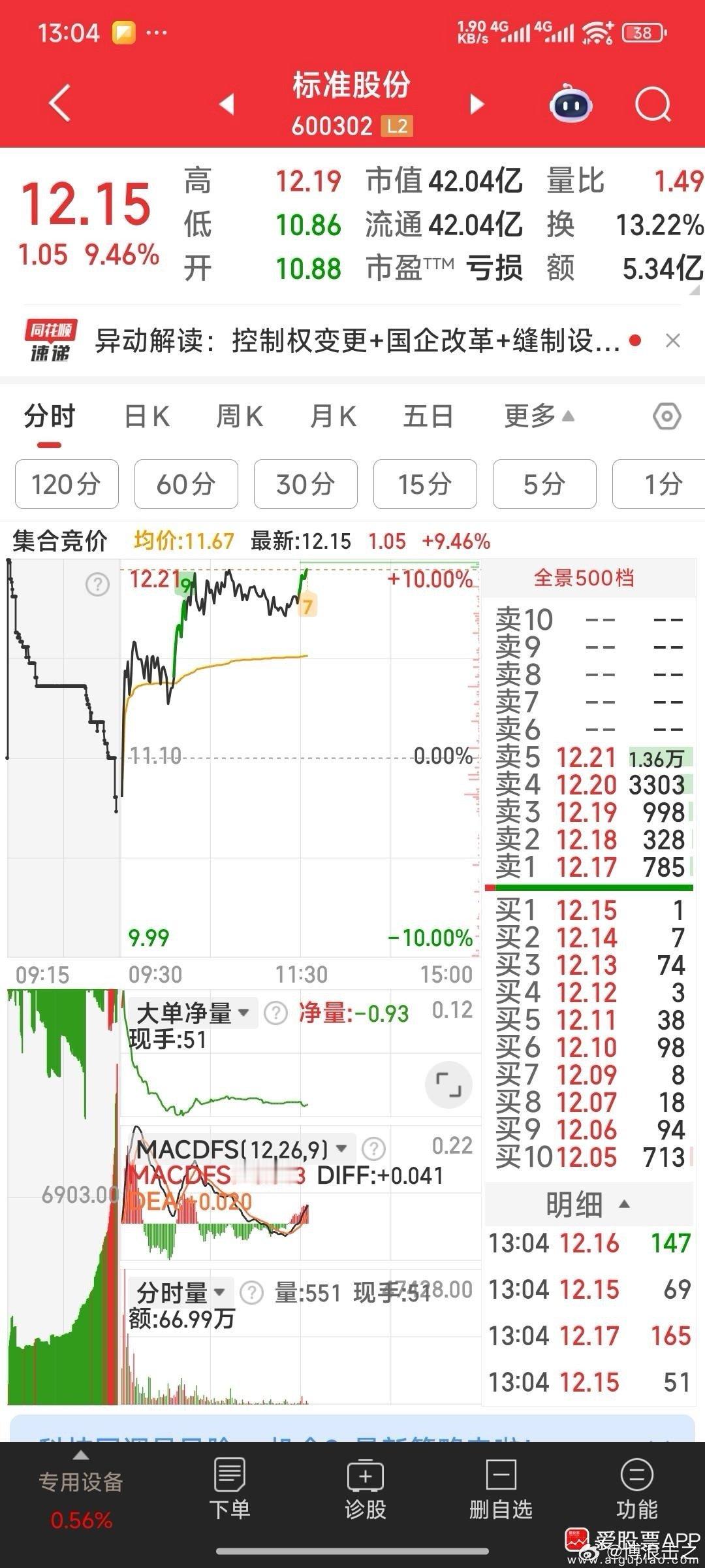 标准股份,马上完成涨停任务!标准股份涨停板价12.21元才挂14133手,看着,