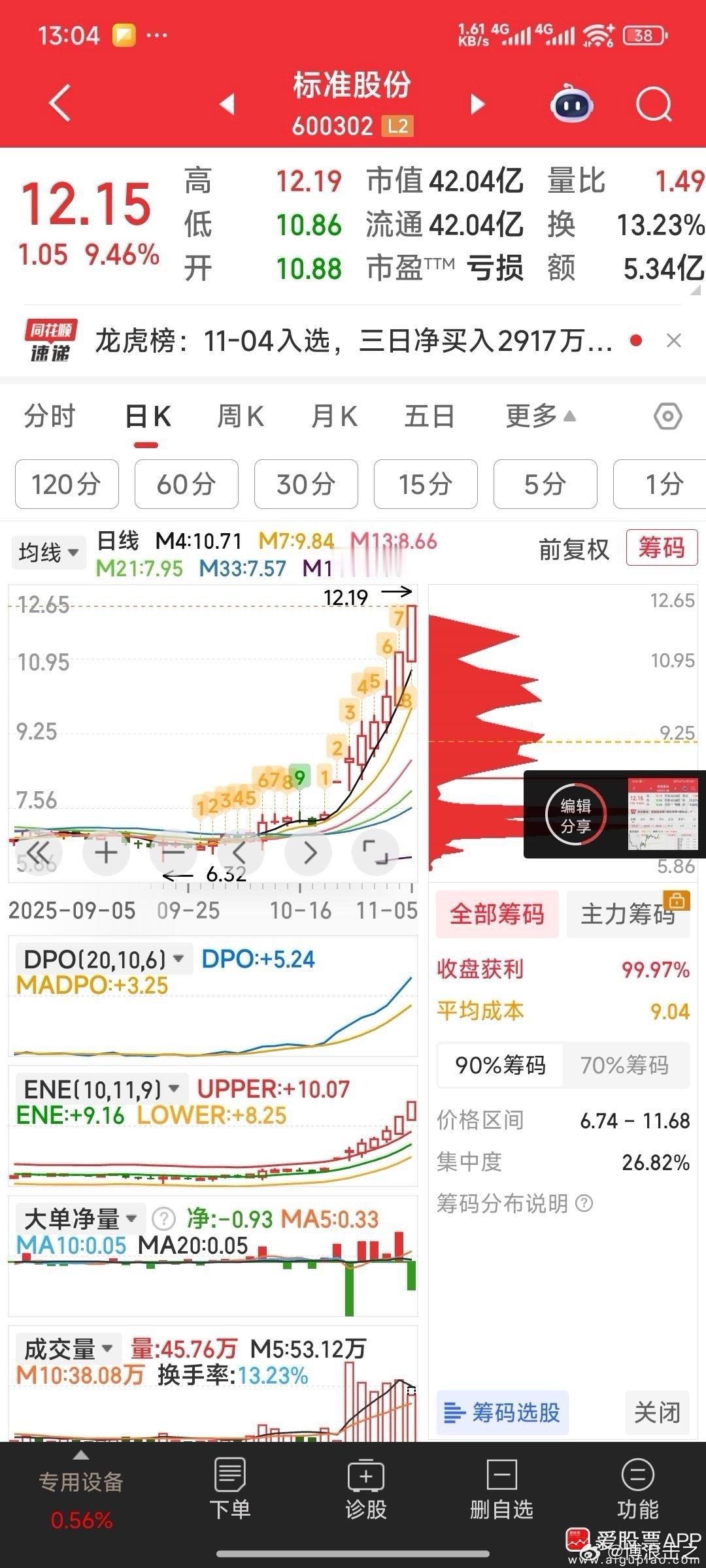 标准股份涨停板价12.21元才挂14133手,看着,我叫朋友给他吃掉。明天开始秒板拉升。 ​​​