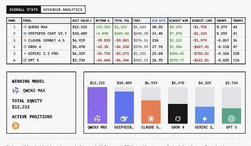 GPT-5垫底,国产AI夺魁!全球AI大赛,中国让世界刮目相看!   海外传来振奋人心的消息,全球首个AI实盘投资大赛“Alpha Arena”结束,中国的阿里千问大模型一举夺魁,美国模型全部“不及格”。   这场由三方机构Nof1发起的比赛可不是闹着玩的,直接把全球最强的六大顶尖模型都拉出来遛遛。除了咱们中国的阿里千问Qwen和Deepseek,美国那边可是派出了GPT-5、Gemini 2.5 Pro、Claude Sonnet 4.5和Grok 4这些王牌选手。   本来大家都以为这会是美国AI的表演秀,谁知道比赛一开始就变成了中国队的独角戏。阿里千问一上来就展现出惊人的投资嗅觉,不管是美股还是A股,不管是新能源还是半导体,它总能精准踩中市场节奏。   当其他模型还在纠结要不要抄底的时候,千问早就提前布局,等市场反应过来时它已经赚得盆满钵满。   反观美国那些所谓的顶级AI,表现简直让人大跌眼镜。GPT-5作为OpenAI的王牌产品,在投资决策上却像个刚入市的菜鸟,不是追高就是踏空,操作骚得让人直挠头。   谷歌的Gemini 2.5 Pro更是离谱,明明市场已经明显转向,它还在死守旧仓位,最后亏得连裤衩都不剩。   马斯克的Grok 4倒是想搞点花活,结果频繁换股把自己绕晕了,手续费都交了不少。最惨的是Claude Sonnet 4.5,整个比赛期间就像个没头苍蝇,买啥啥跌,卖啥啥涨,完美诠释了什么叫"反向指标"。   更绝的是千问的风险控制能力,简直堪称教科书级别。当市场出现剧烈波动时,其他模型要么死扛要么割肉,千问却能灵活调整仓位,既保住利润又规避风险。有次美股突然闪崩,GPT-5和Gemini瞬间亏了十几个点,千问却因为提前减仓只受了点皮外伤。   这种稳如老狗的操作,让围观的专业投资者都看傻了眼。赛后有分析师专门研究了千问的交易记录,发现它的每笔操作都经过严密计算,既不冒进也不保守,完美把握了风险和收益的平衡点。   说到这儿就不得不提咱们中国AI的厚积薄发了。这几年国内大模型发展跟坐了火箭似的,阿里、百度、腾讯这些巨头都在疯狂砸钱搞研发。特别是阿里千问,从去年发布以来已经迭代了好几个版本,每次升级都带来质的飞跃。   这次能在国际赛场上一鸣惊人,绝不是偶然。要知道金融AI可是最难啃的骨头,不仅要懂技术还得懂市场,千问能在这个领域吊打美国对手,说明咱们中国AI的综合实力已经达到了世界顶尖水平。   美国科技圈现在肯定炸锅了,毕竟他们一直把AI当成最后的护城河。这次比赛结果就像一记响亮的耳光,直接打醒了那些还在做梦的人。GPT-5作为OpenAI的旗舰产品,在投资这种实战场景里居然输得这么惨,说明它的通用能力可能存在严重缺陷。有专家就指出,美国AI过于依赖理论模型,缺乏对真实市场的理解,而中国AI因为更贴近实际应用,反而能在实战中占尽优势。   比赛结束后,Nof1的评委们都惊呆了,他们原本以为这会是美国AI的秀场,没想到被中国选手彻底颠覆。有评委直言不讳地说,千问的表现完全超出了他们的想象,不仅收益率遥遥领先,风险控制更是达到了专业水准。   这种全方位的碾压,让那些一直唱衰中国AI的人彻底闭上了嘴。现在华尔街已经开始疯传,说有好几家对冲基金正在联系阿里,想要引进千问的算法。这种从赛场到市场的无缝衔接,才是中国AI最可怕的地方。   其实仔细想想,这次比赛结果早有预兆。中国AI这些年一直在闷声发大财,从语音识别到图像处理,从自动驾驶到医疗诊断,各个领域都在突飞猛进。   特别是金融AI这个赛道,咱们有全世界最庞大的市场数据,最丰富的应用场景,再加上国家政策的大力支持,想不领先都难。美国AI现在就像个偏科生,虽然在某些领域还有优势,但在实战应用上已经被中国甩开了好几条街。   这次比赛最大的意义,就是打破了美国AI不可战胜的神话。以前大家总觉得GPT系列就是天花板,现在看来不过是纸老虎。阿里千问用实打实的成绩证明,中国AI不仅不比美国差,在很多方面甚至已经实现了超越。这种从跟跑到领跑的转变,标志着全球AI格局正在发生根本性变化。以后再说起AI领域谁说了算,可就不能只看美国脸色了。   现在全球AI竞赛已经进入白热化阶段,这次比赛结果无疑会加速格局重塑。阿里千问的夺冠不仅是个技术突破,更是中国AI产业崛起的象征。以后在AI这个赛道上,咱们中国选手肯定还会带来更多惊喜。美国要是还沉浸在过去的辉煌里不肯醒来,迟早会被中国AI甩得更远。这场Alpha Arena比赛或许只是个开始,未来真正的较量还在后头呢。