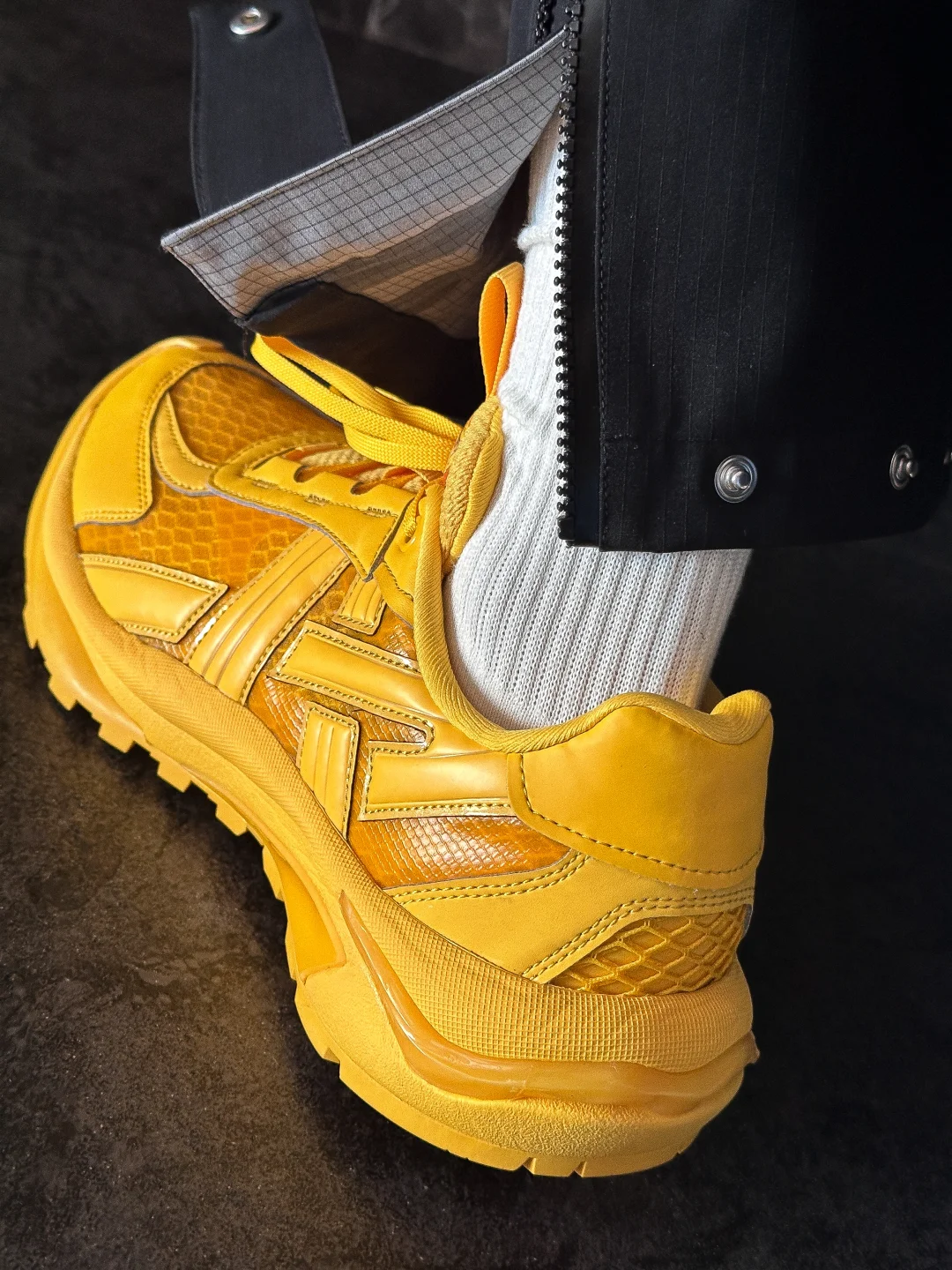 鞋面采用半透明网面和开放式网眼布的组合,层次丰富又透着设计巧思,细看很有质感。