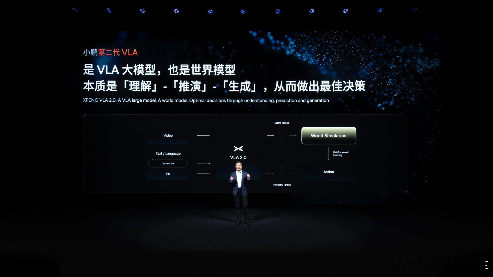 何小鹏称:小鹏第二代VLA提前开始「物理世界模型」新范式,是继端到端、标准VLA之后,智能驾驶最大的一次飞跃。
