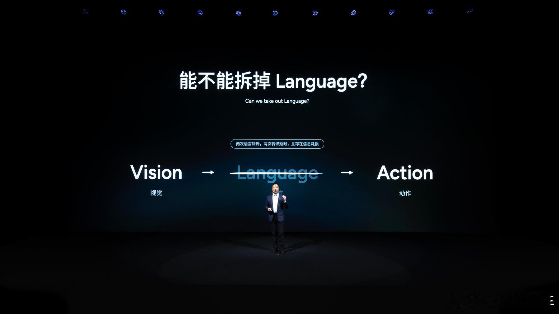 这是小鹏创新于时代的VLA大模型理解,打破了行业标准去思考“能不能拆掉Language”,去掉语言转译,以视觉为核心,追求“百文不如一见”的模型效果。