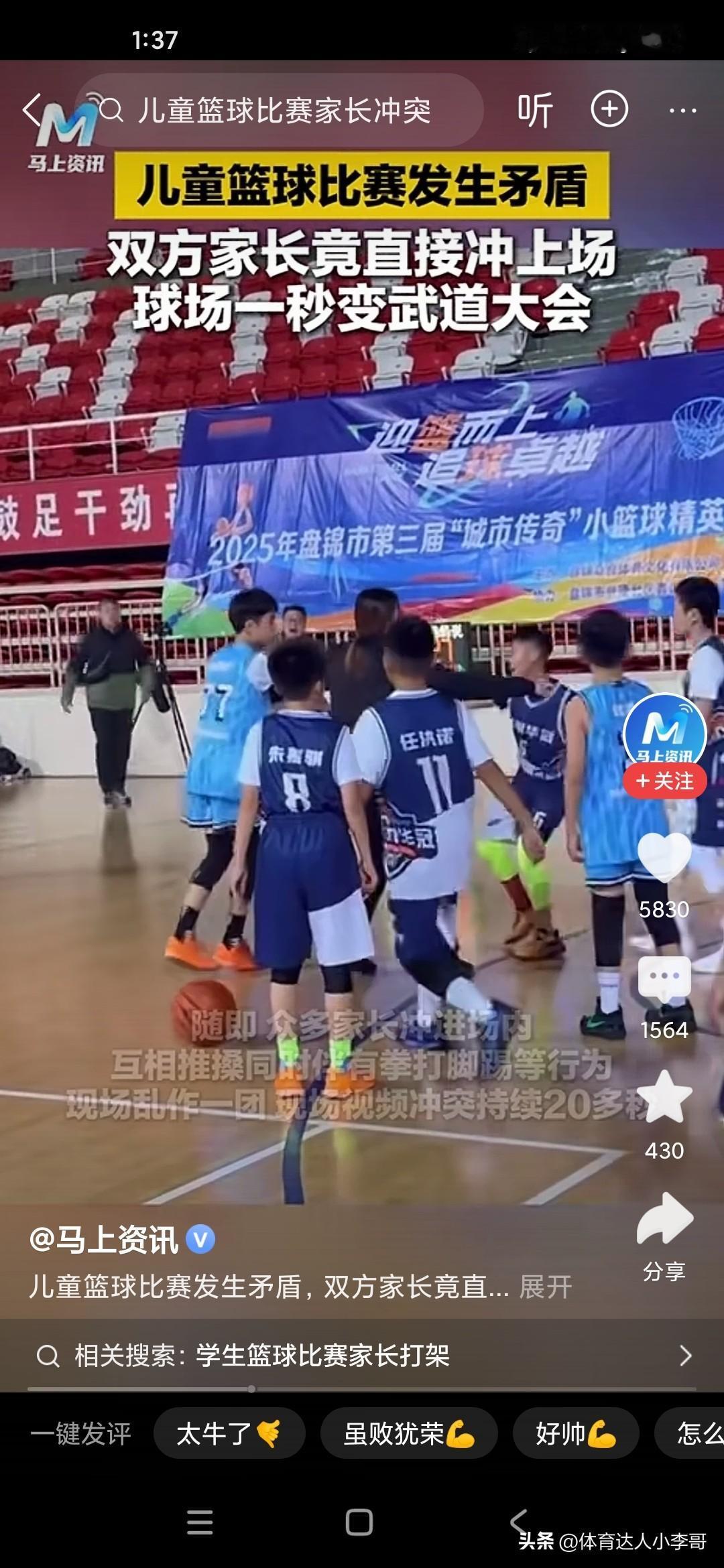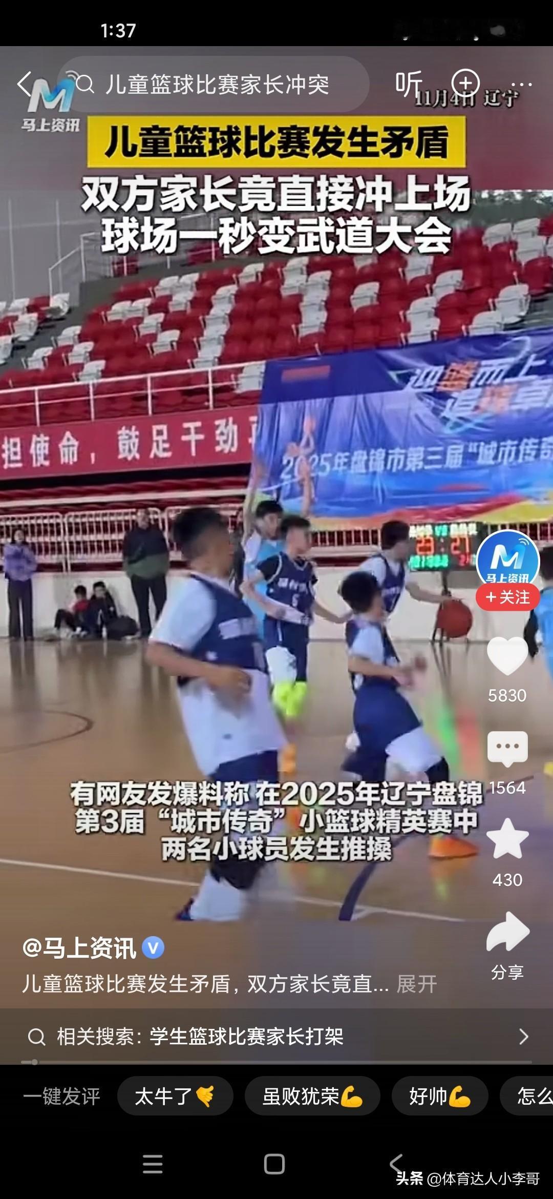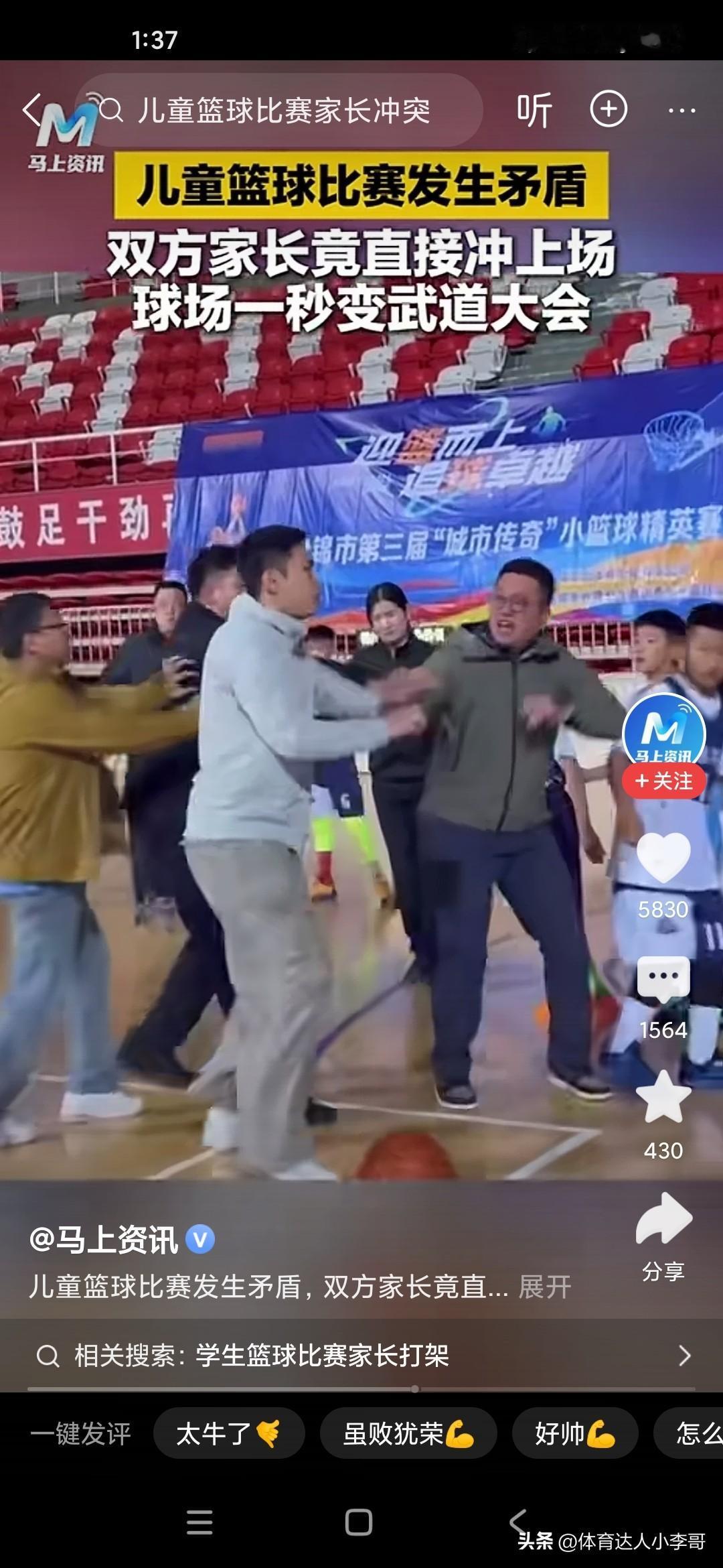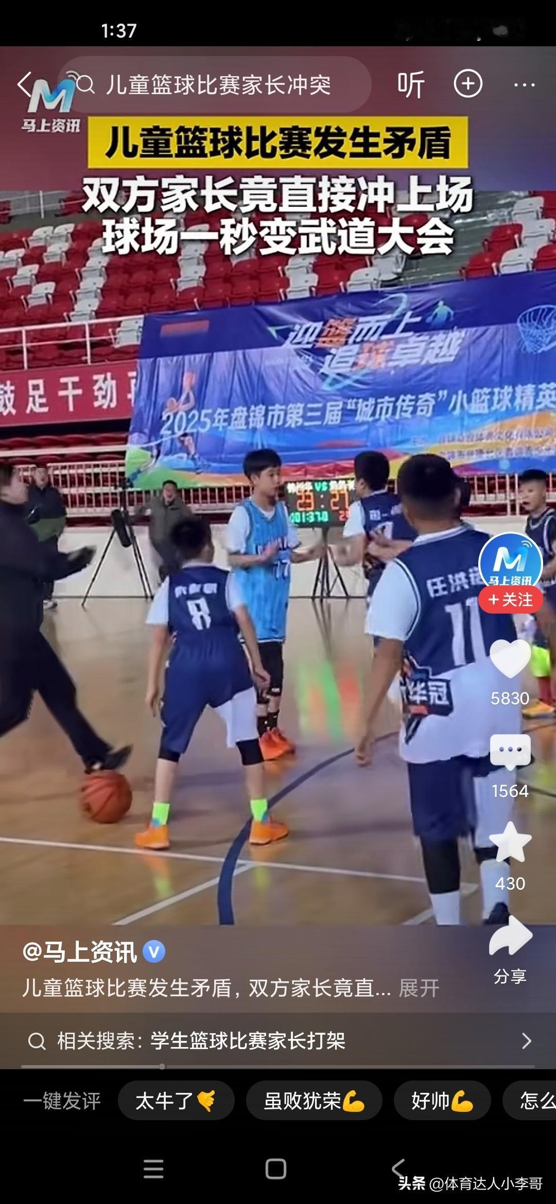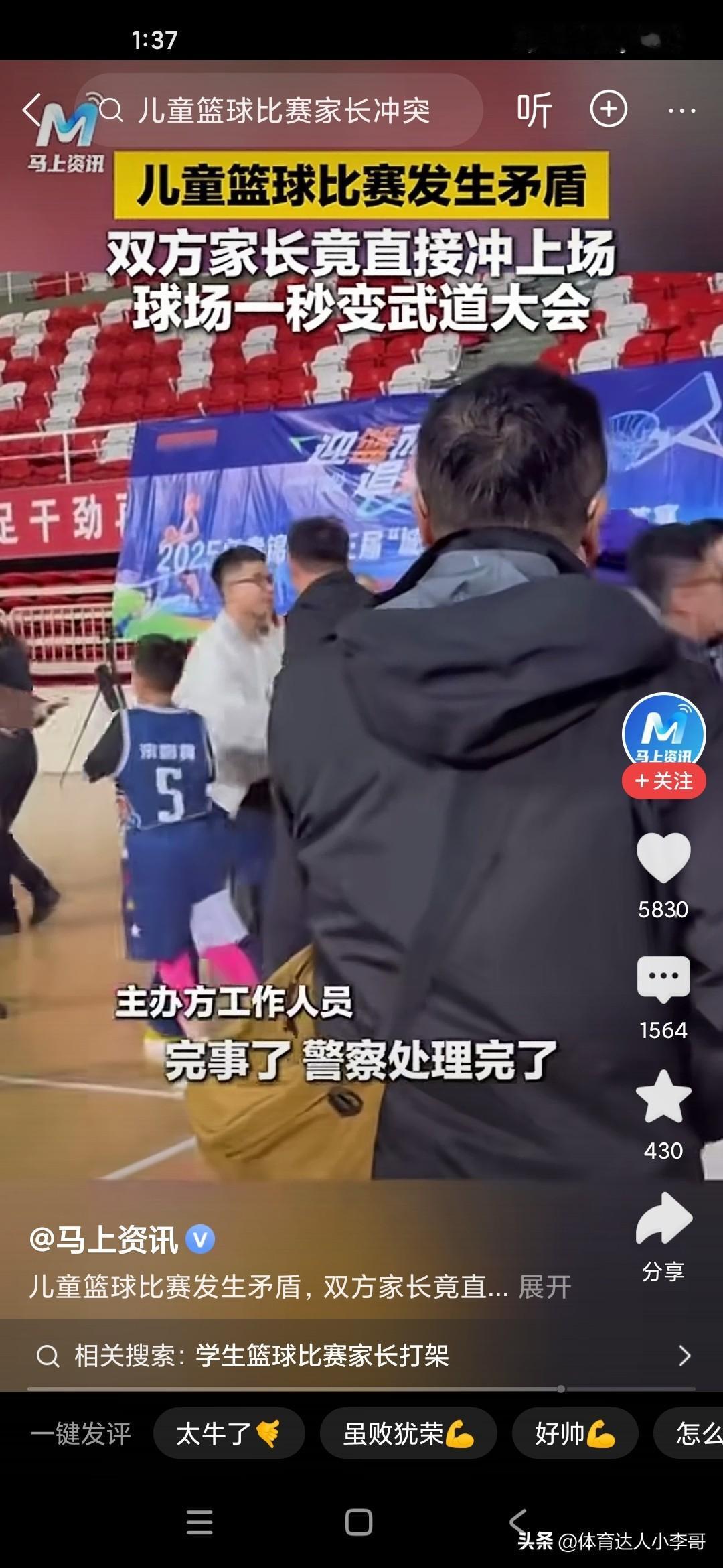 有的时候在我教篮球的过程中也会发现在比赛的过程中,有些家长过于激动,他的小孩一旦吃亏他都接受不了,可能就会指责别人家的小孩,在这个时候的话,我就赶紧出来劝和我说这个比赛的事情呢,全部交给我们教练和裁判,然后我们家长的话尽量不多嘴不参与,因为这样的话会让事情变得更加复杂,本来是一件小事,如果是家长参与其中的话就会变得非常复杂,因为对方觉得小孩的事情应该由小孩去解决,他们有自己的解决方法,如果小孩这个做法呀,或者在比赛过程中屡次犯规呀,这就非常考验我们的裁判了,裁判要公正,要严厉,也有也要有分寸,因为这个小孩比较小嘛,可能还有很多地方的确是需要我们大人去引导,但是如果我们家人大人也参与其中的话,就会容易把事态变得严重,如果你打人的话,可能就要受到这个严厉的这个法律制裁,尤其是将对方打伤的话!