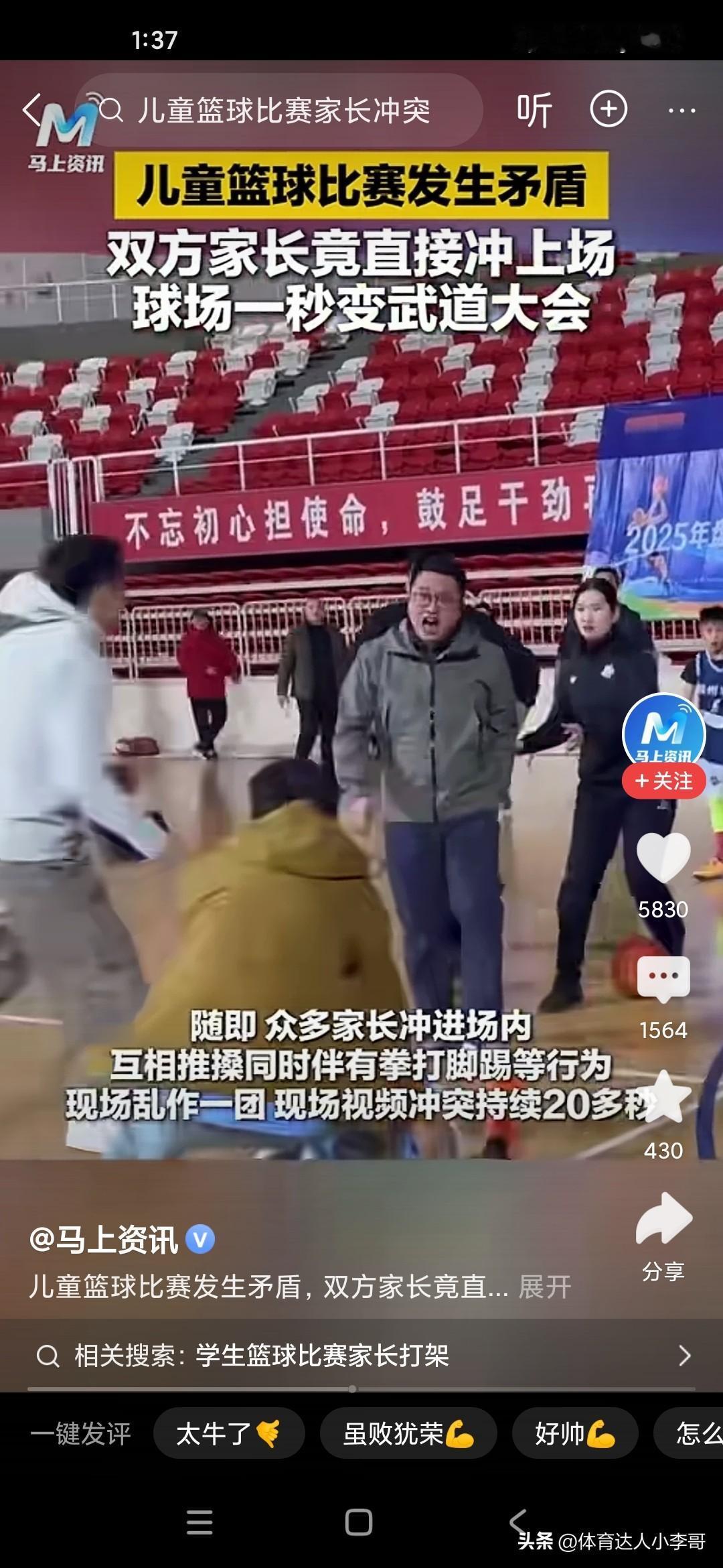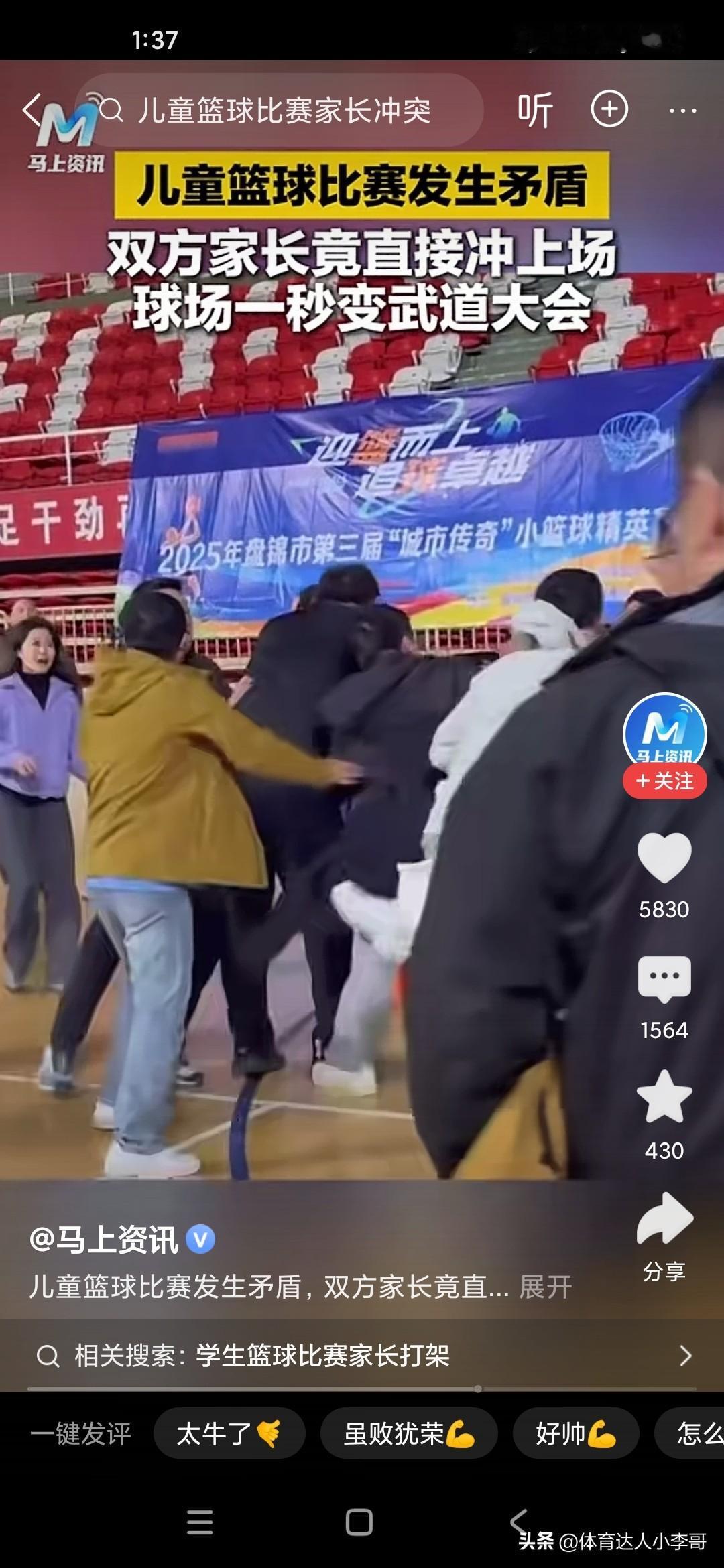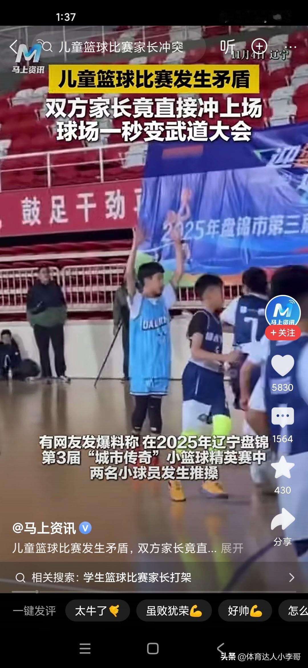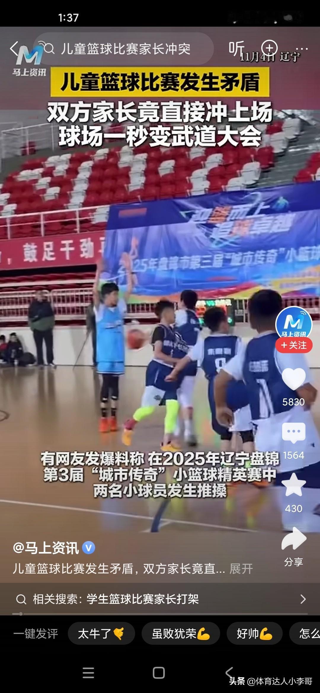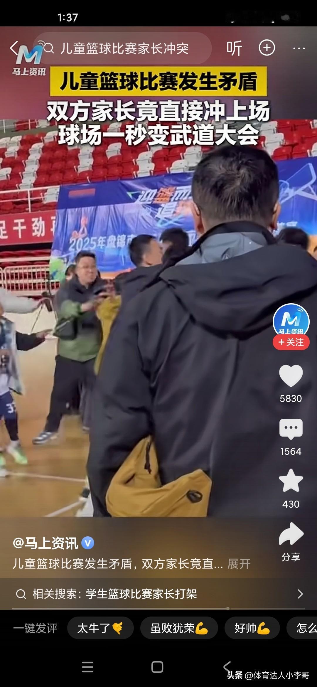 有的时候在我教篮球的过程中也会发现在比赛的过程中,有些家长过于激动,他的小孩一旦吃亏他都接受不了,可能就会指责别人家的小孩,在这个时候的话,我就赶紧出来劝和我说这个比赛的事情呢,全部交给我们教练和裁判,然后我们家长的话尽量不多嘴不参与,因为这样的话会让事情变得更加复杂,本来是一件小事,如果是家长参与其中的话就会变得非常复杂,因为对方觉得小孩的事情应该由小孩去解决,他们有自己的解决方法,如果小孩这个做法呀,或者在比赛过程中屡次犯规呀,这就非常考验我们的裁判了,裁判要公正,要严厉,也有也要有分寸,因为这个小孩比较小嘛,可能还有很多地方的确是需要我们大人去引导,但是如果我们家人大人也参与其中的话,就会容易把事态变得严重,如果你打人的话,可能就要受到这个严厉的这个法律制裁,尤其是将对方打伤的话!