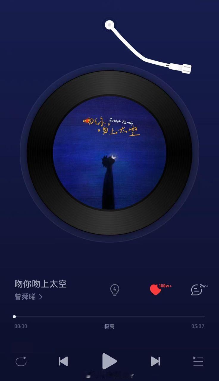 恭喜曾舜晞第四首百万级收藏单曲诞生!连续三年,四首破百万收藏单曲。单平台累计收藏量 破1300万+ 做演员做歌手都实绩耀眼!曾舜晞新歌吻你吻上太空