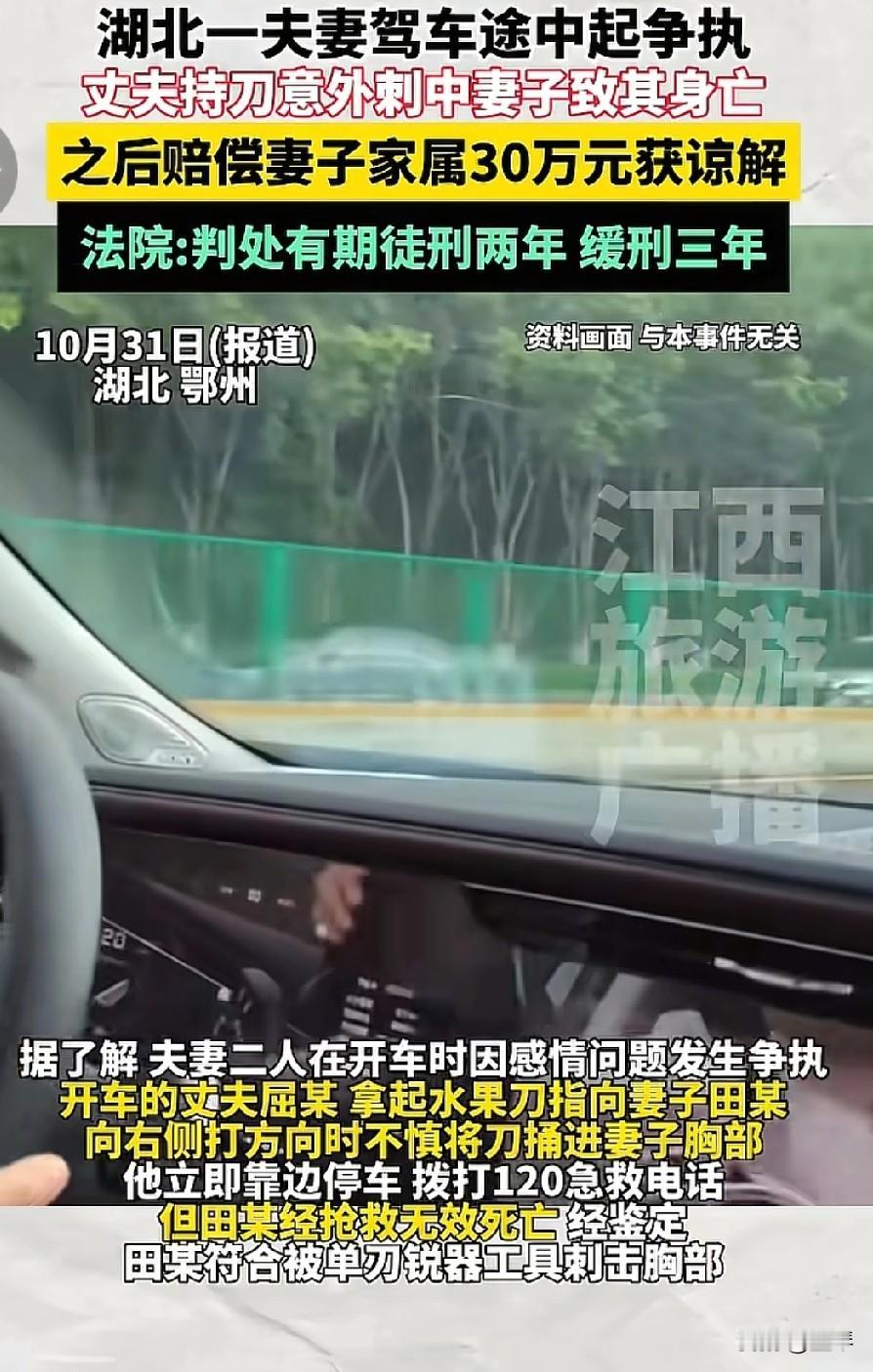 你的命,可能在有些娘家人眼里,没有钱重要。 湖北鄂州的车厢里,那把水果刀刺进她胸口的时候,她大概没想过:自己的死亡,会被娘家人标上“30万”的价码。 夫妻争执里,开车的丈夫抄起刀指向她,打方向时失手捅穿胸膛。她没等来急救的生机,却等来了娘家人接过30万赔偿款、在谅解书上签字的结局——最终,持刀致她死亡的丈夫,只换来了“有期徒刑两年、缓刑三年”的判决。 她是妻子,是女儿,是活生生的人,却在“家人”的权衡里,成了一笔“划算”的交易:30万,买断了凶手的刑期,也买断了她留在这世上的最后一点重量。 那些本该站在她这边的人,把“亲人”的身份折成了钞票;那些该为她讨回公道的程序,成了给施暴者兜底的台阶。 车厢里的刀是凶器,娘家人手里的笔,是扎在她墓碑上的第二根刺。 ——别让“家人”,成了最狠的背叛者。 如果连血脉至亲都能把你的命换算成数字,那这人间的“家人”二字,到底是港湾,还是屠宰场的招牌? 她躺在冰冷的太平间里,而拿了钱的娘家人,或许转头就忘了:那30万里,每一张都沾着她的血。 湖北