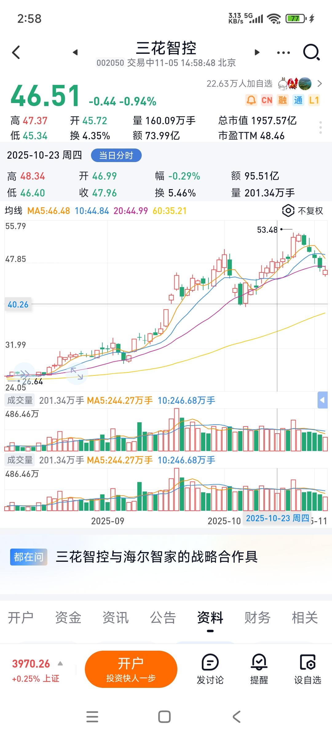 三花智控,感觉53.48元已经是它的顶了...三季度股东人数增加近20万,达到了近45万...前段时间股价调整到40块附近,然后特斯拉的小作文一出,又拉到了50块上方... 这种手法,感觉就是为了拉高出货,当然,后面还会来这么几次折腾,才会有更多散户进来的...