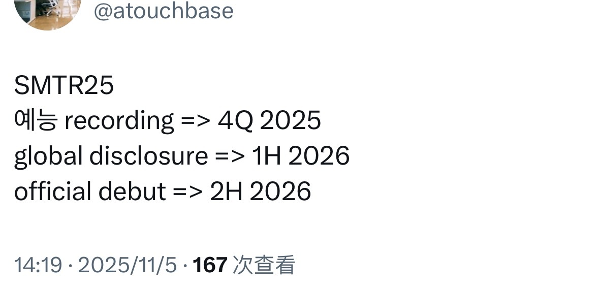 SMTR25真人秀预计2026年上半年全球公开,15名公开的练习生和未公开的练习