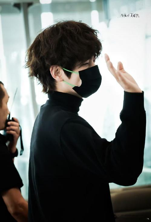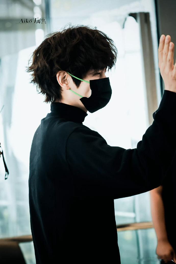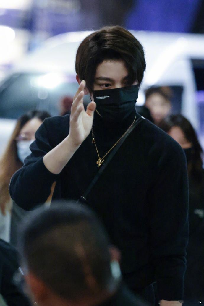 丁禹兮泰国回国到达丁禹兮泰国出发回国机场路透黑色系造型衬得身形高挑,“黑色高领毛