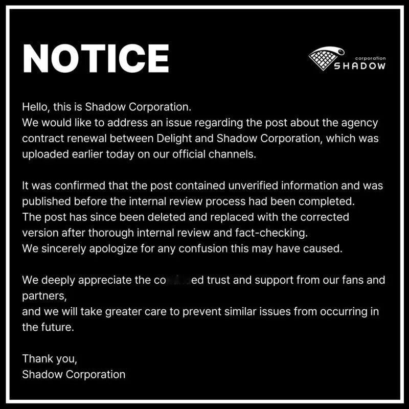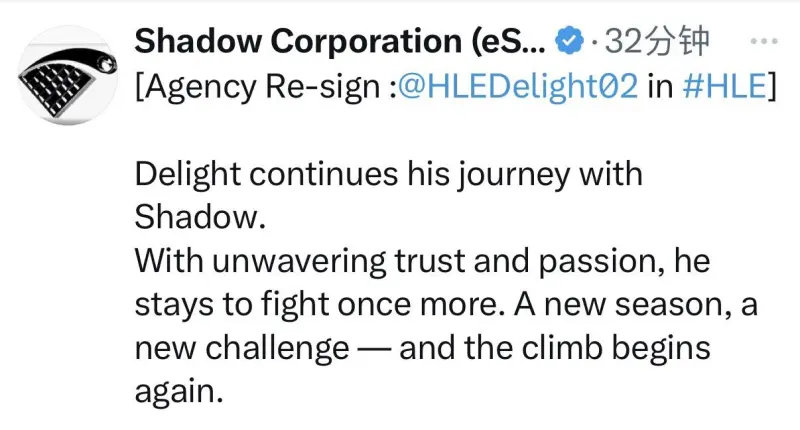 这经济公司是什么草台班子啊,这也能说错的?此前Delight所属经纪公司Shadow宣布其已与HLE续约,之后迅速删除原推文,发文称Delight选手与经纪公司续约。