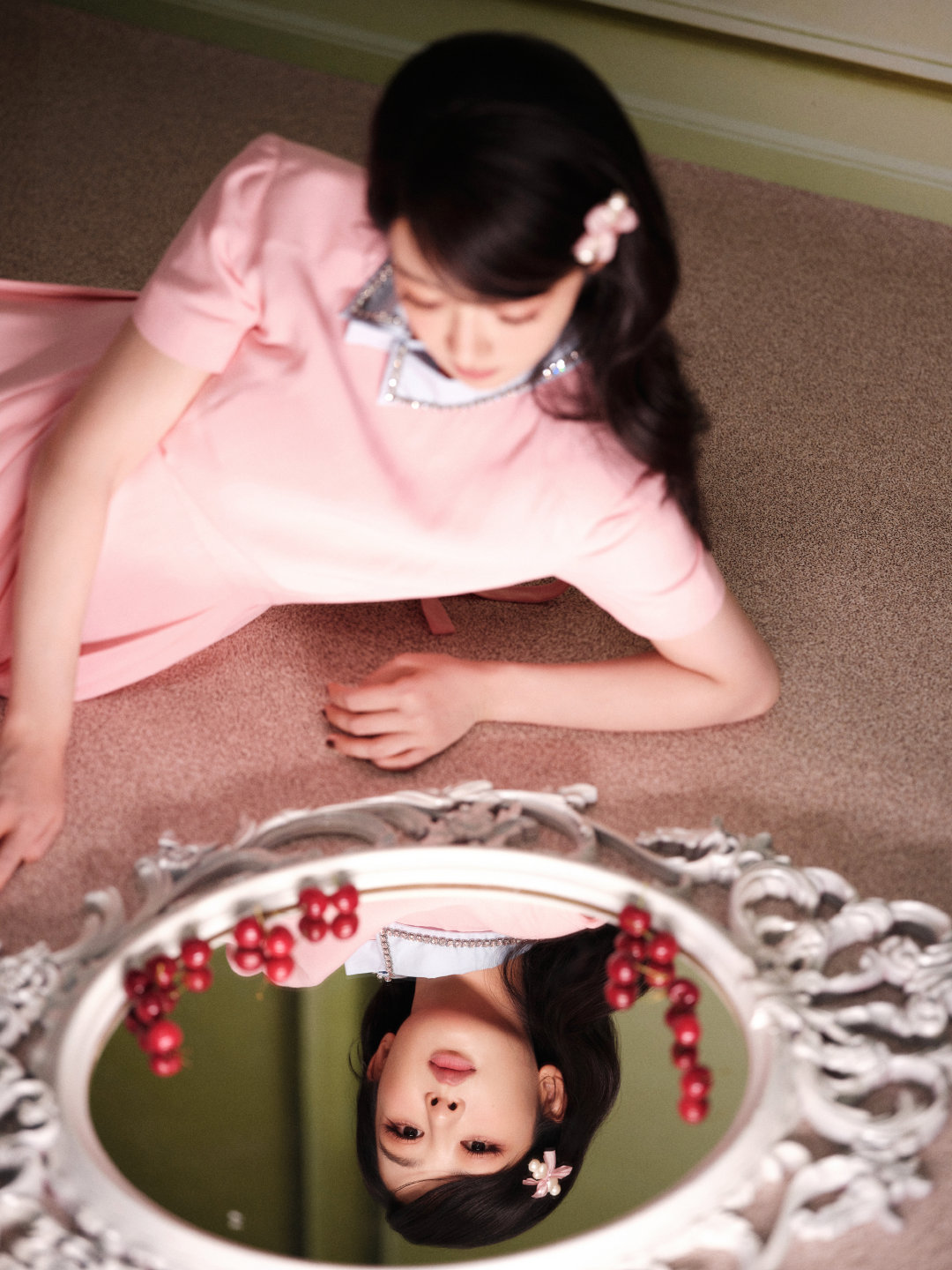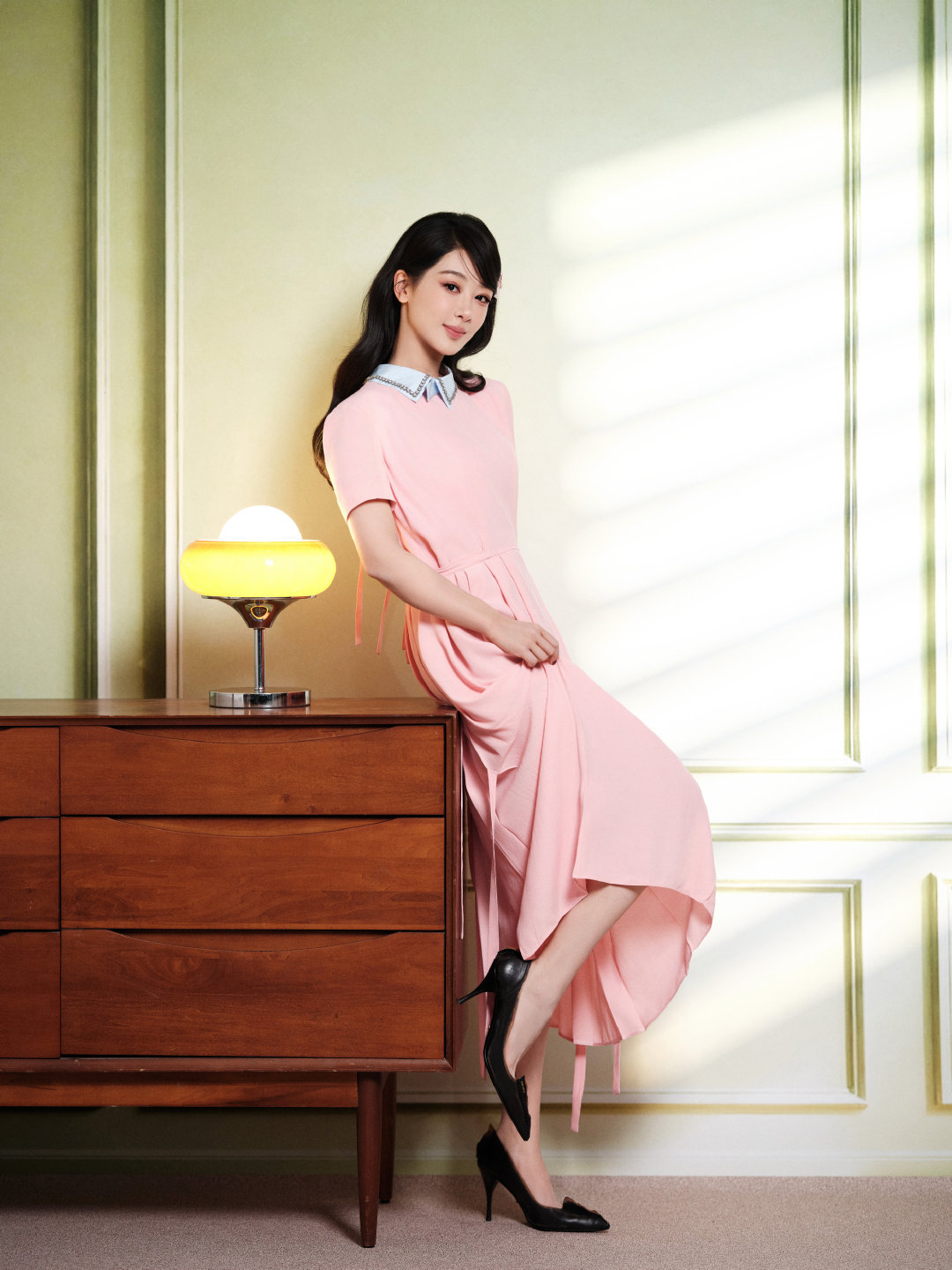 杨紫×PRADABeauty今日品牌美妆直播造型大片📸温柔粉色连衣裙,