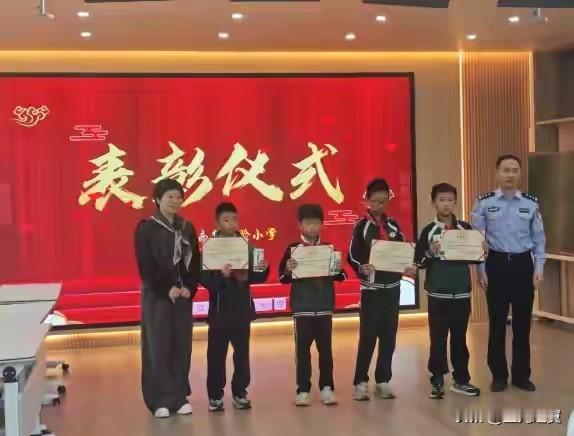 “少年强则国强!”浙江温州,四名小学生相约一起到小卖部买零食,刚买完出来,一个装有一沓现金的红包“从天而降”,红包落在地上发出了声音,同时也吸引了四个孩子的注意,看到散落一地的现金,孩子们的第一反应亮了! 来源:【光明网】 事情发生在温州市瓯海区一个平常的中午。南堡小学五年级的邓博安、张雨辰、李俊哲、郑心诚四位同学相约去小卖部买零食! 他们刚走出店门,一个红包突然“从天而降”,一大沓百元大钞应声散落在地! 眼看钱就要被大风刮走,四个男孩没有慌乱,而是默契地展开合作。邓博安和郑心诚留在原地,围住散落的钞票,防止钱被风吹走;李俊哲和张雨辰则迅速跑回小卖部,向老板求助! 小卖部老板见到这一场景也吓了一跳。他们等待了一会儿,却不见失主前来认领。于是,孩子们不约而同地想到了同一个主意——交给警察! 在诱惑面前,这四个平均年龄不过11岁的孩子没有丝毫动摇! “我们交到公安局吧!”李俊哲同学的这一提议,立刻赢得了大家的一致赞同。他们小心地整理好散落的钞票,在老板的帮助下拨通了报警电话! 很快,经济开发区派出所的巡逻警力赶到了现场! 经现场清点,红包内装有整整10000元现金,却没有任何失主的身份信息! 通过对现场情况的分析,出警人员判断这笔钱很可能是楼上住户不小心掉落的。但由于住宅楼装有门禁,众人决定先回派出所,再进一步查找失主! 没想到的是,当天下午,派出所就接到了一通紧急求助电话。打电话的温先生焦急地表示,自己藏在被子里的一个红包不见了,里面装有一万元现金! 原来,温先生当天趁着天气晴好,将被子拿到阳台晾晒,却完全忘记了被子里藏有红包这回事。直到下午,他才突然想起,顿时紧张不已,慌忙报警求助! 经过民警的仔细核实,确认温先生就是那四位小学生捡到的一万元现金的失主! “一万元失而复得,真的很感谢这几位小朋友!”从民警手中接过失而复得的现金,温先生激动不已。当得知是四名小学生捡到钱后第一时间报警时,他更是忍不住连连称赞! 事后,为表彰四位小朋友拾金不昧的优秀品质,派出所民警来到南堡小学,在全班同学的热烈掌声中,民警为邓博安、张雨辰、李俊哲、郑心诚四人颁发了荣誉奖状,还送上了文具用品作为鼓励! 那一刻,孩子们脸上的笑容比阳光还灿烂! 虽然荣誉奖状和文具用品,这些奖励并不贵重,却弥足珍贵。它们见证了一个发自内心的善良选择,也将在更多孩子心中播下诚信的种子! 从“我在马路边捡到一分钱”的童谣,到万元现金的当代考验,纯真的童心从未改变!