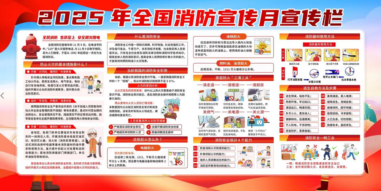 2025年全国消防宣传月。2025年全国消防宣传月宣传栏,全民消防,生命至上,安
