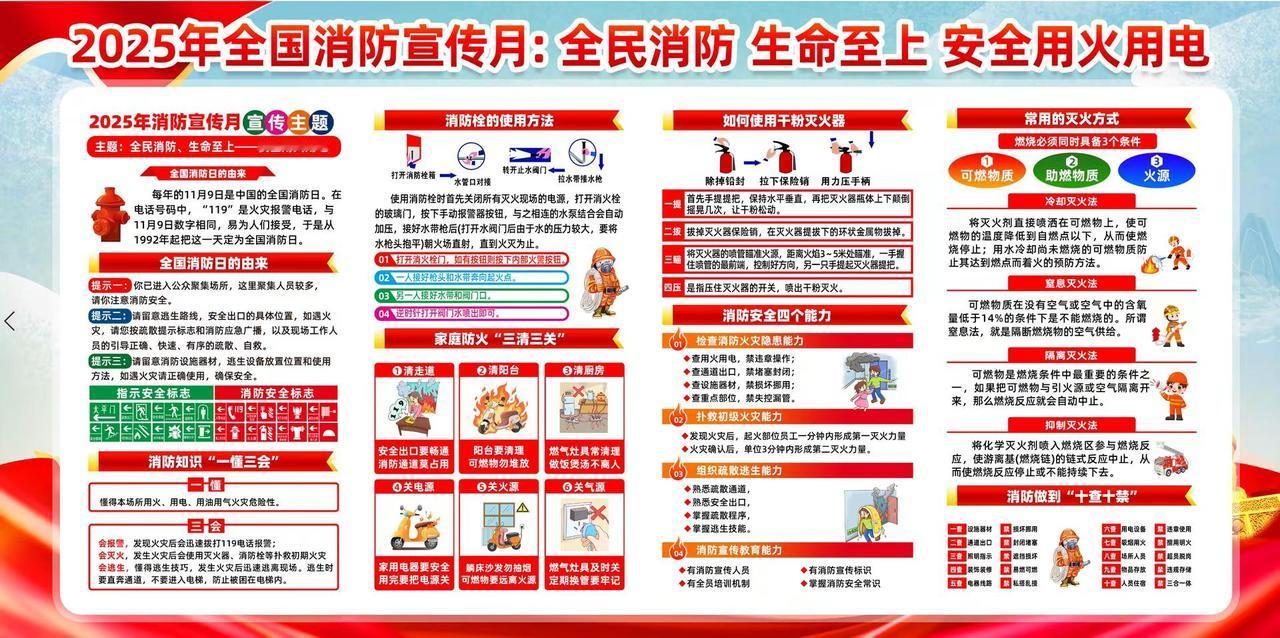 2025年全国消防宣传月。2025年全国消防宣传月宣传栏,全民消防,生命至上,安全用火用电
