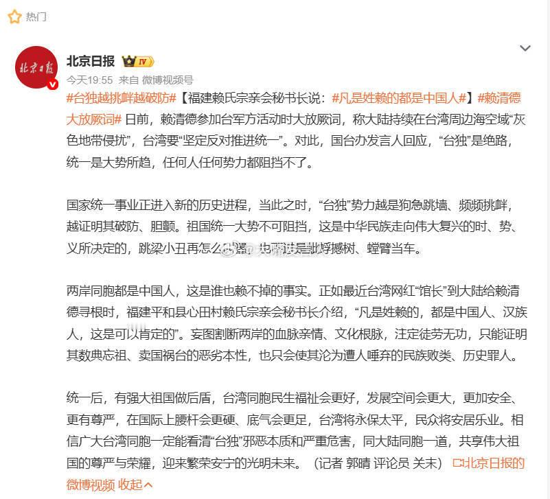 凡是姓赖的都是中国人,赖清德大放厥词 ,热点观点