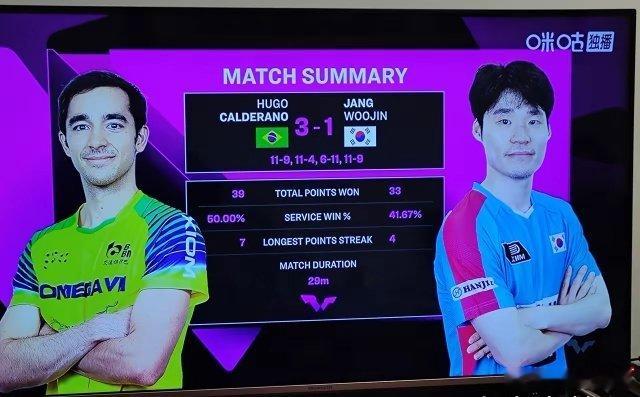 第二场比赛——雨果.卡尔德拉诺🇧🇷3-1张禹珍🇰🇷