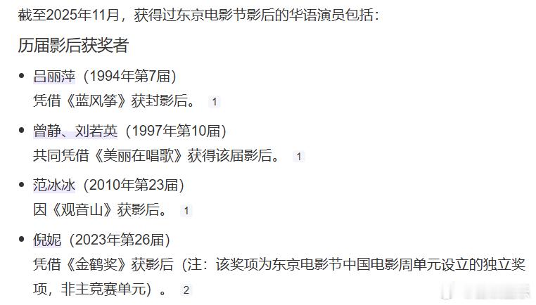 除此之外,好些国际电影节都没听说过,拿了也不被观众和业界认可。至于隔壁的东京国际电影节,因为离得近,华语演员特别是男演员获奖多,参加的人数和频率比较高,所以有些热度和知名度。至于含金量,自然大打折扣,无法和戛纳、威尼斯和柏林媲美。