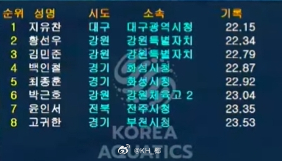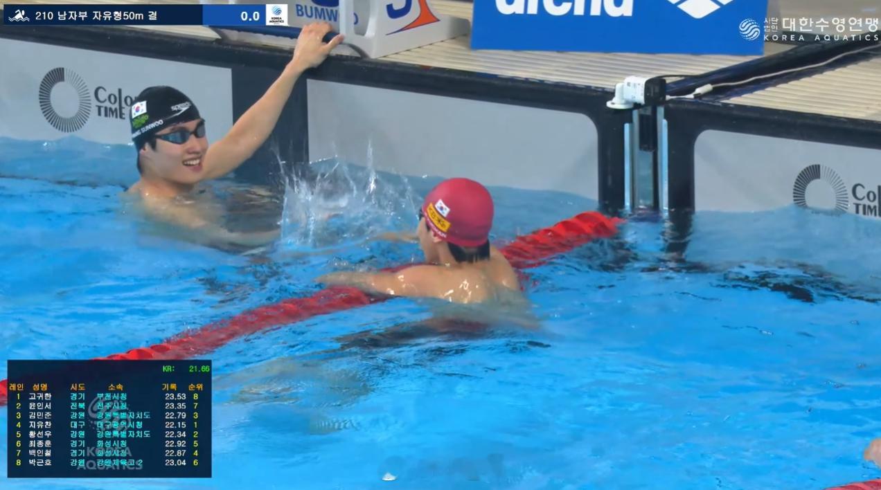 韩国国家队选拔赛 男50自决赛池浴灿 22.15黄宣优 22.34