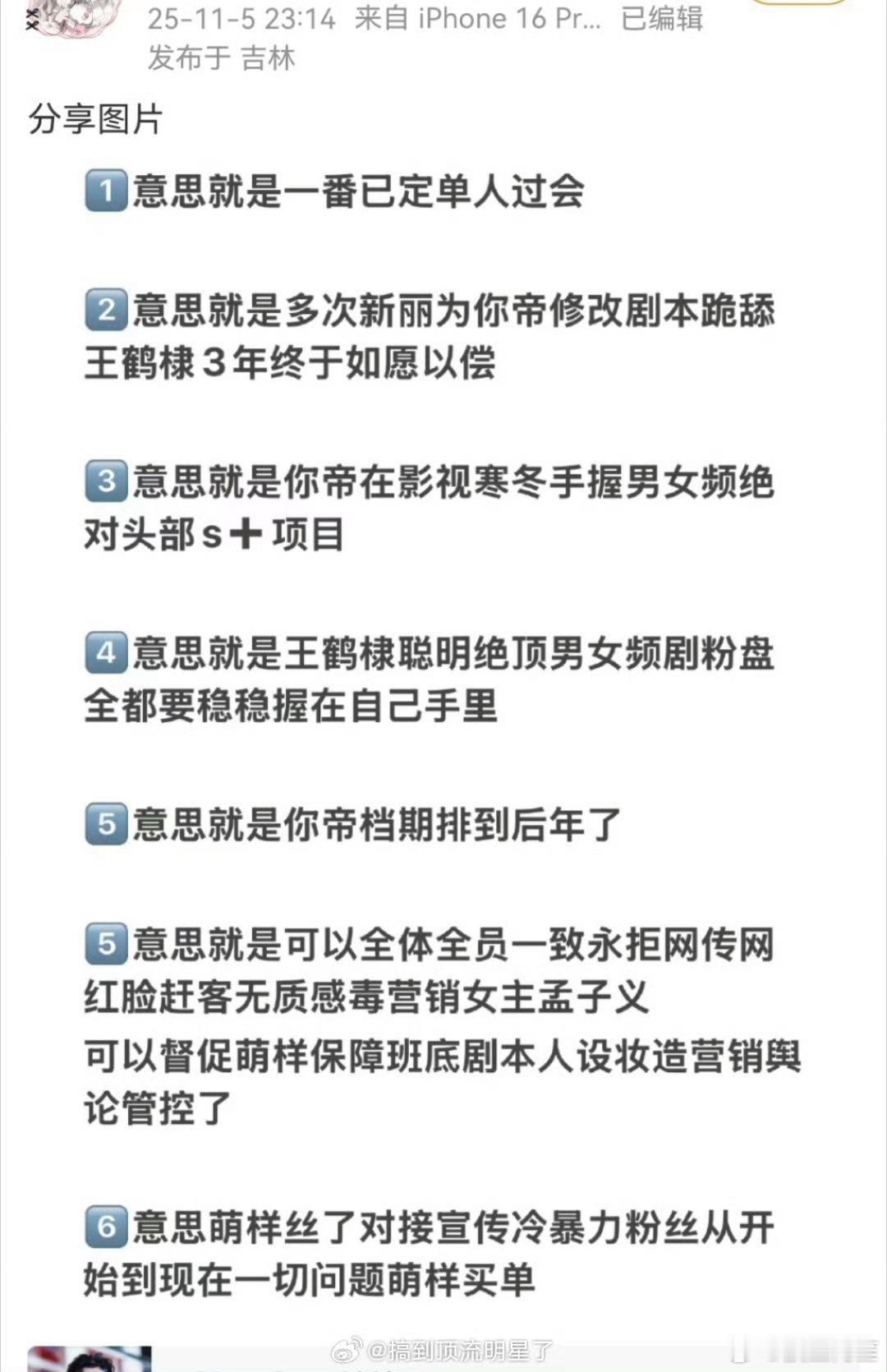 不过王鹤棣其实是很合适这部剧的,首先不可否认的长得很帅,气质很适合原著的谢景行。其次是大流量,能带剧,起码他接了以后投资应该不用担心,而且河堤跟新丽是深度合作,还有可能的大奉第二季要拍。最后,将门毒后这个饼是相当有名的女频饼,王鹤棣现在的存货都是男频居多,但是还很年轻真的没必要放弃女频这一块的发展。而且虽然我认为孟子义很适合,但是既然是定男选女,女主还不确定,也没什么好说的了[允悲] 将门毒后网传演员阵容