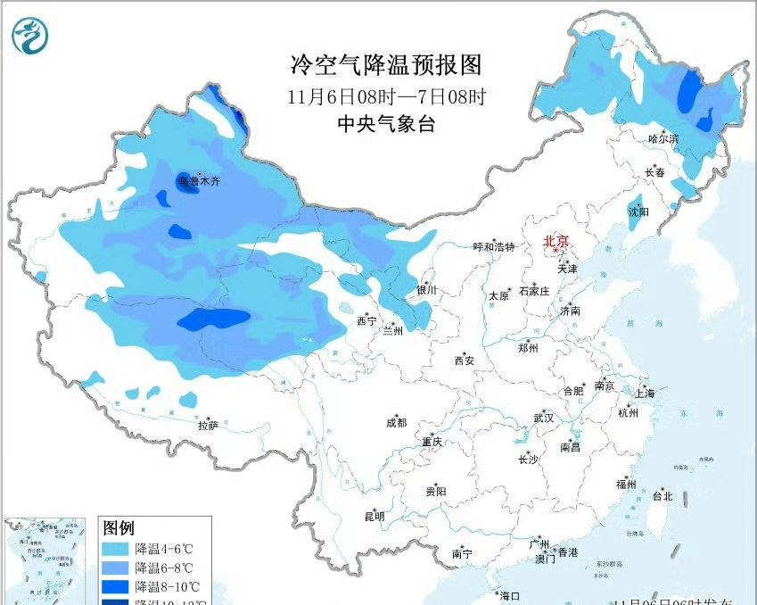 北方多地将迎气温跳水】北京 大雾未来三天(11月6日至8日),受较强冷空气影响,北方将现大范围雨雪天气,其中新疆、内蒙古部分地区或现较强降雪,公众需关注预警预报信息,尽量避开雪大的时段出行。同时,冷空气还将给西北、华北、东北以及江南到西南地区东部等地带来明显降温,局地气温降幅可超10℃,需关注气温变化,及时添衣防感冒。北京 大雾