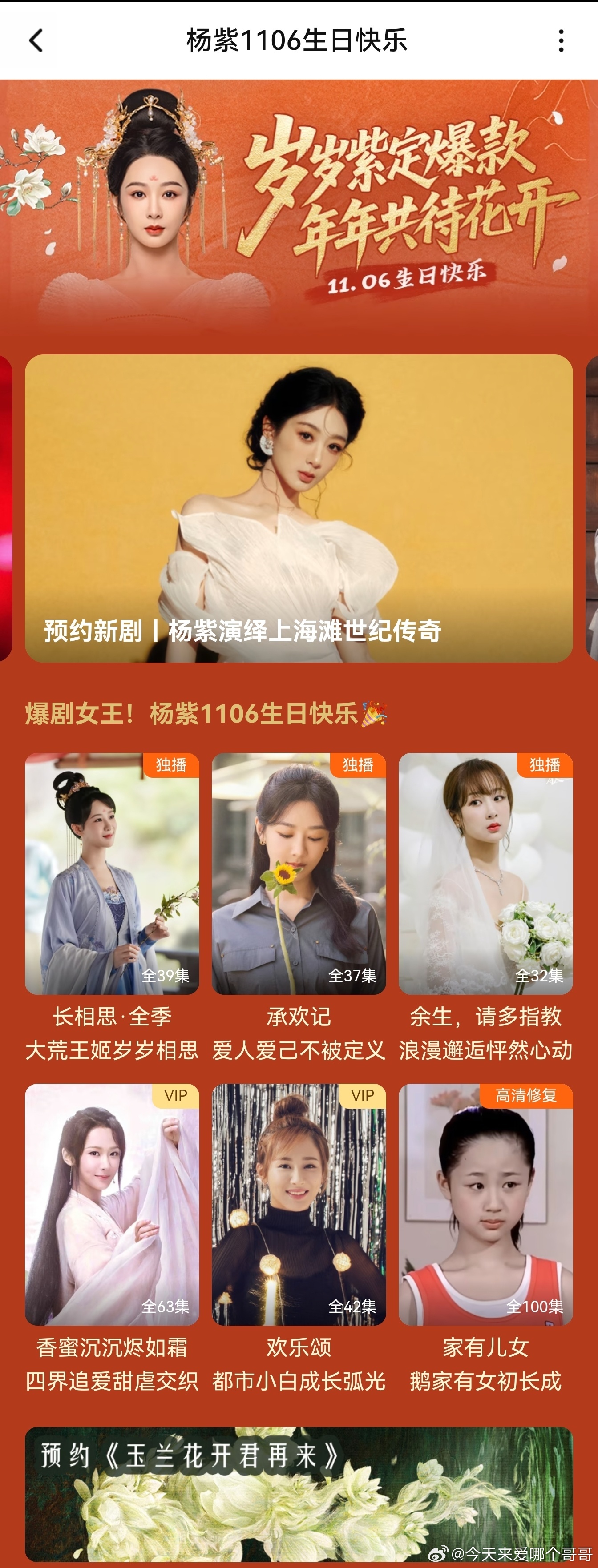 腾讯视频杨紫生贺主题片单,爆剧女王的排面[点赞]
