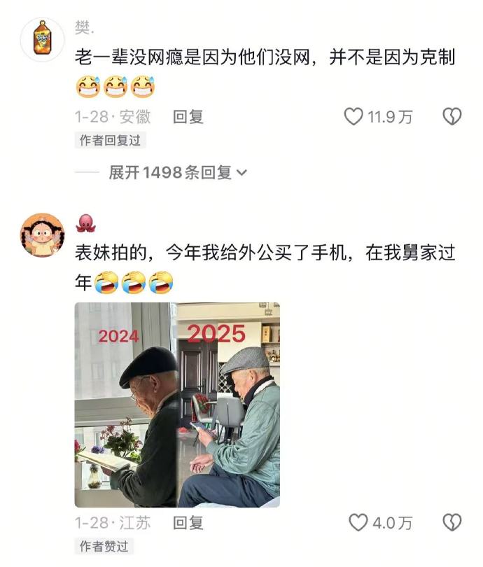 爷爷奶奶:七八十岁正是玩手机的年纪