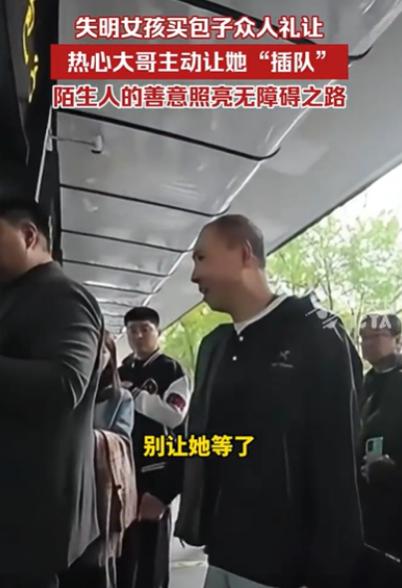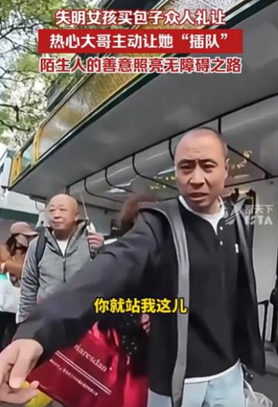 泪目!北京一失明女孩独自去买包子,没想到,到了之后,发现排了很长的队伍,她刚准备离开时,却被一位大哥拦住,主动让她“插队”!女孩很善良的回应:不用不用,这插队不太好!随后的一幕,却让网友们集体破防! 徐佳媛把自己在牛街的经历剪成视频分享出去,评论区里满是“被暖到了”的留言。 没人想到,这个23岁的视障姑娘,带着存了一周的零花钱和运动相机出门时,心里还揣着“就算碰钉子也想试试”的念头——她只是想独自买一回心心念念的牛肉包。 视频里最让人印象深的,是她买完包子转身时的画面:原本挤得紧紧的队伍突然往两边分了分,刚好留出一条能让她通过的路。 有个戴围巾的阿姨轻轻扶了下她的胳膊,说“前面两步有台阶,慢点儿走”。 她顺着声音挪脚,走出去十多米远,还听见身后传来一句“路上小心啊”,那是陌生路人的声音,却透着说不出的踏实。 没人知道,在这之前,队伍里的人们已经用自己的方式,悄悄给了她很多温暖。 穿红衣服的阿姨看到她摸索着掏钱包,悄悄往队伍外侧挪了挪,用胳膊挡住身后往前挤的人潮,直到她把钱递到包子铺窗口才退回队伍。 更早的时候,徐佳媛还站在队伍末尾犯难。 她手里攥着根银色盲杖,时不时轻轻碰一下地面,周围全是讨价还价的、孩子哭闹的声音,她分不清队伍的头和尾,只能贴着墙根慢慢蹭。 偶尔碰到前面人的肩膀,就赶紧往后退半步,小声说“抱歉”,指尖因为紧张而微微泛白。 改变是从一个头发花白的大爷开始的。 大爷转身给老伴递纸巾,胳膊不小心撞到了她的盲杖,低头看到她闭着的眼睛,立马放轻了声音:“姑娘,我排得靠前,你过来跟我一块儿。” 徐佳媛赶紧摆手拒绝,并向其道谢。 她的话刚说完,队伍里就热闹起来。穿格子衫的阿姨往前探了探身:“这哪叫插队啊,你先买!”穿蓝色外套的大哥更直接,往旁边挪了挪,对着前面喊“大伙儿让让,别让姑娘冻着”。 原本吵吵嚷嚷的队伍突然静了下来,有人悄悄走到她身后扶着盲杖,不让风吹得杖身晃动。 有人跟包子铺老板说“先给这姑娘装包子”。 还有个阿姨站在她旁边,轻声报着“牛肉的、羊肉的,刚蒸好的”。 就连路边的环卫工师傅,都注意到了这个特殊的姑娘。 他看到徐佳媛的盲杖在离自己不远的地方轻轻点过地面,停下了手里的扫帚,目光跟着她的身影移动,直到她转过街角,才重新挥动扫帚清扫地面上的碎屑。 这些细碎的举动,没有人大声宣扬,却都实实在在地帮到了她。 徐佳媛要的从来不是特殊对待,只是一次和普通人一样排队买包子的机会,而那些陌生人,刚好懂她的心思,用一句句“没事没事”的体谅,维护了她想要独立的尊严。 其实帮视障朋友真的不用太复杂,就像那天牛街的人们一样:碰见了先问问“要不要我描述下周围环境”,看到有人攥着盲杖辨方向,指个路、说下队尾在哪,就够了。 毕竟善意从来不分认识不认识,你多一分体谅,别人就多一分勇气,那些不起眼的小动作,总能把街头巷尾捂得暖暖的。 如果各位看官老爷们已经选择阅读了此文,麻烦您点一下关注,既方便您进行讨论和分享,又能给带来不一样的参与感,感谢各位看官老爷们的支持!