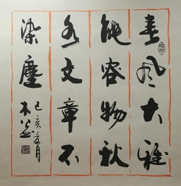 这样的书法风格你喜欢吗? 这样的几幅书法作品都呈现出豪放型的行草风格,很有特点用笔,提按顿挫强烈,线条苍劲有力,富有张力。 字形大小错落、欹正相生,打破常规布局,充满动感。 章法布局茂密,字距行距紧密,形成“密不透风”的视觉效果。 墨法浓淡枯润对比鲜明,增强了作品的层次感和节奏感。 这种风格明显受到徐渭等狂草大家的影响,属于浪漫主义书风的范畴,追求情感的自由表达和艺术的个性。