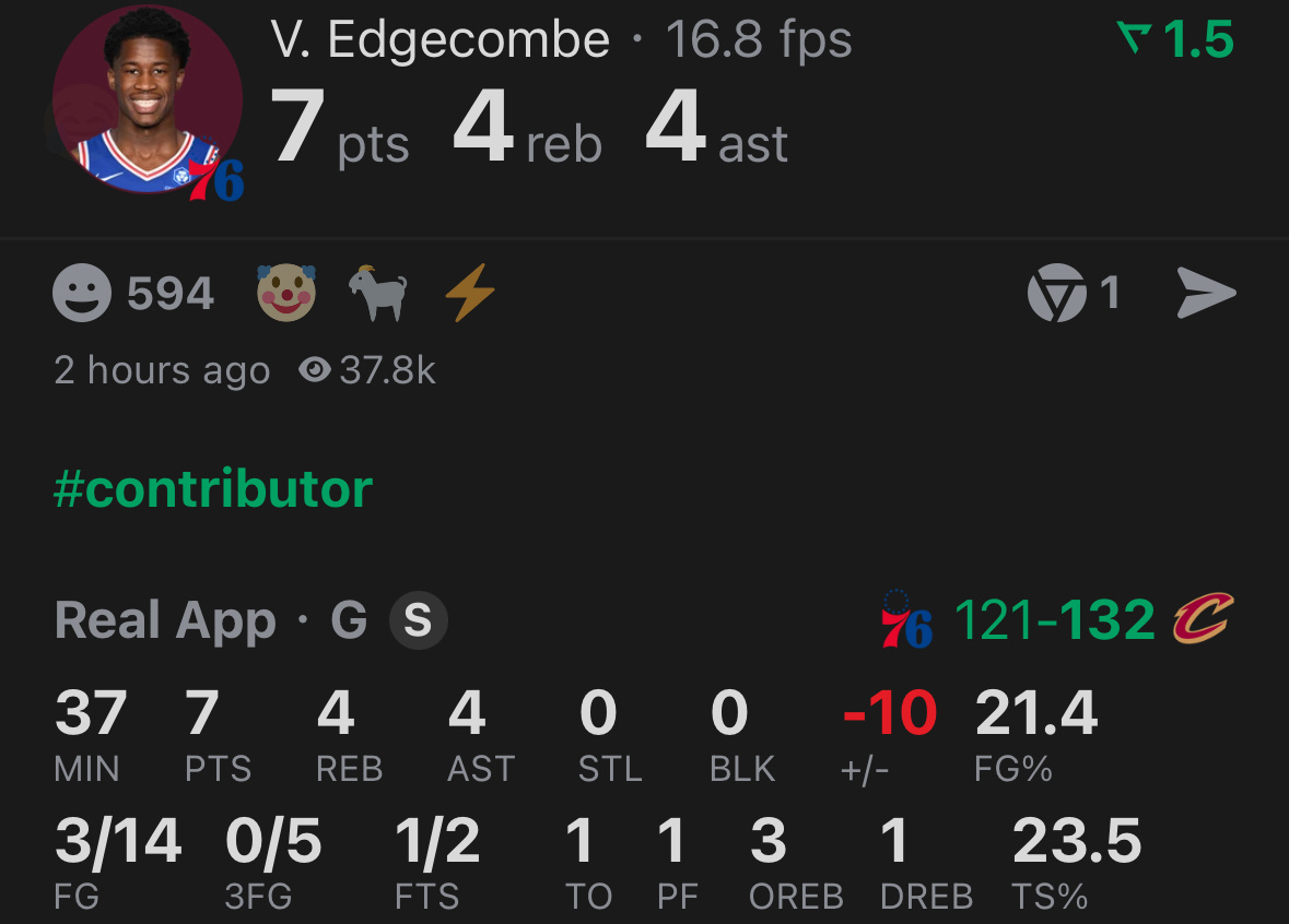 VJ打出了进入NBA相对很糟糕的一战,14中3只拿7分,生涯首次得分未能上双。