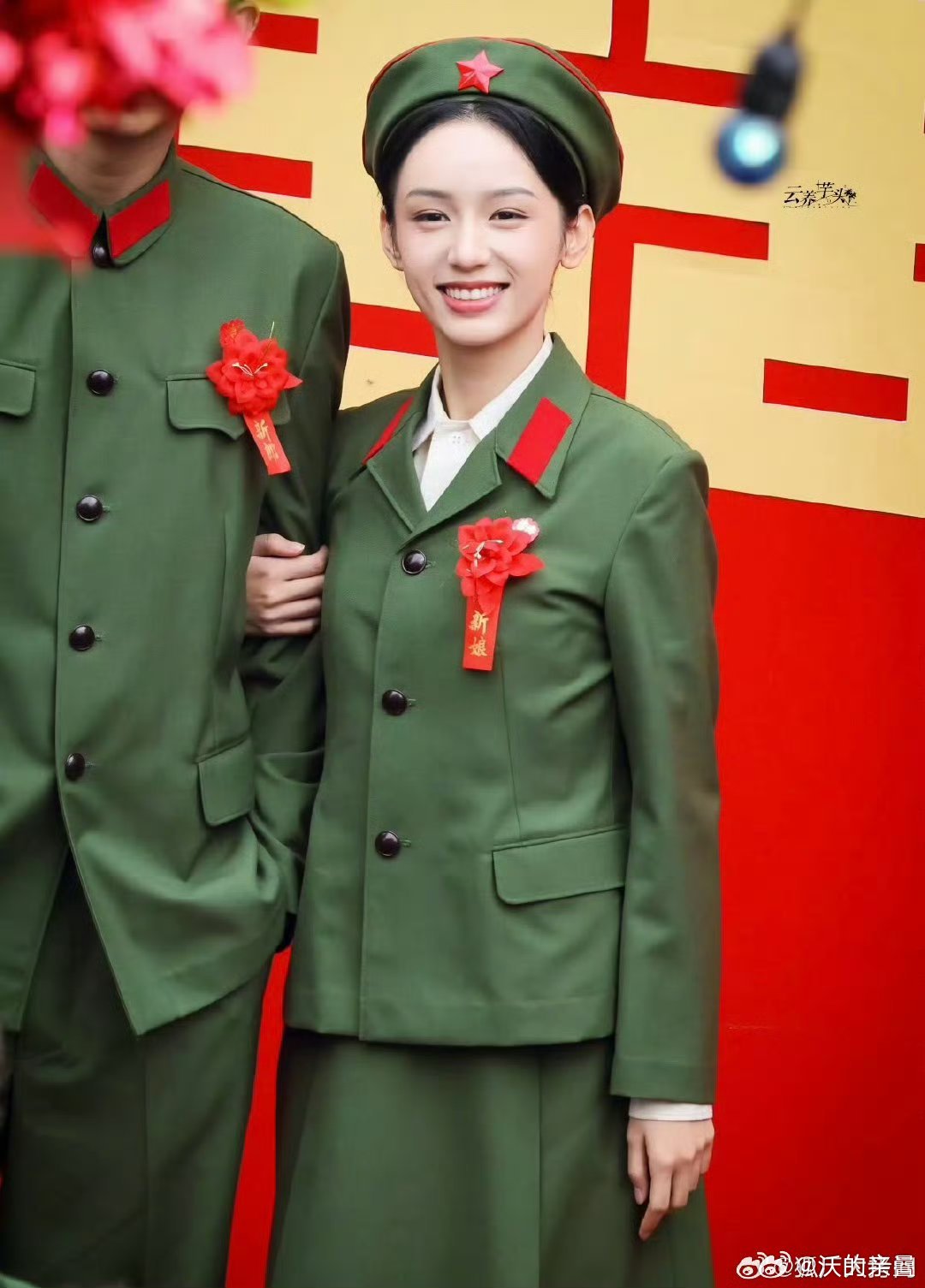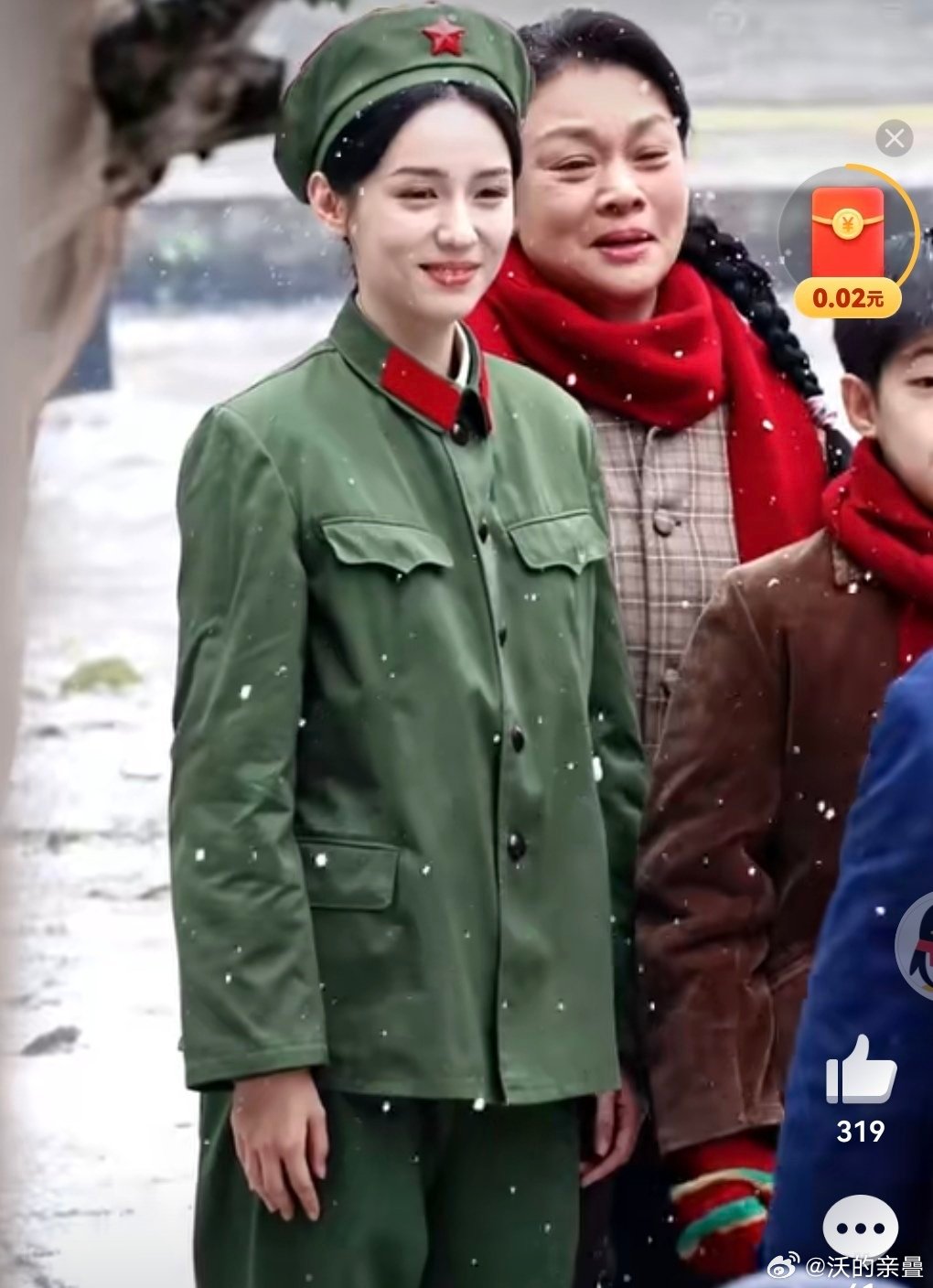张天爱跟素人合影,胯真的好宽,大宅院似的