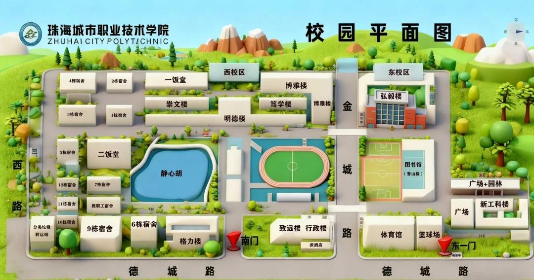 我眼里的珠海城市职业技术学院 学校地图🗺️新设计 学校大门-格力楼-图书馆 学校生活环境 学校的风景 欢迎报考 珠海 珠海城市职业技术学院 校园地图