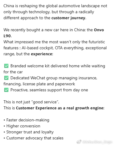 看到HCLTech的销售总监说他们公司最近在上海购买了乐道L90。要知道,她服务的主要客户可是大众集团,还曾经在Capgemini与CARIAD打过几年交道。[偷笑]