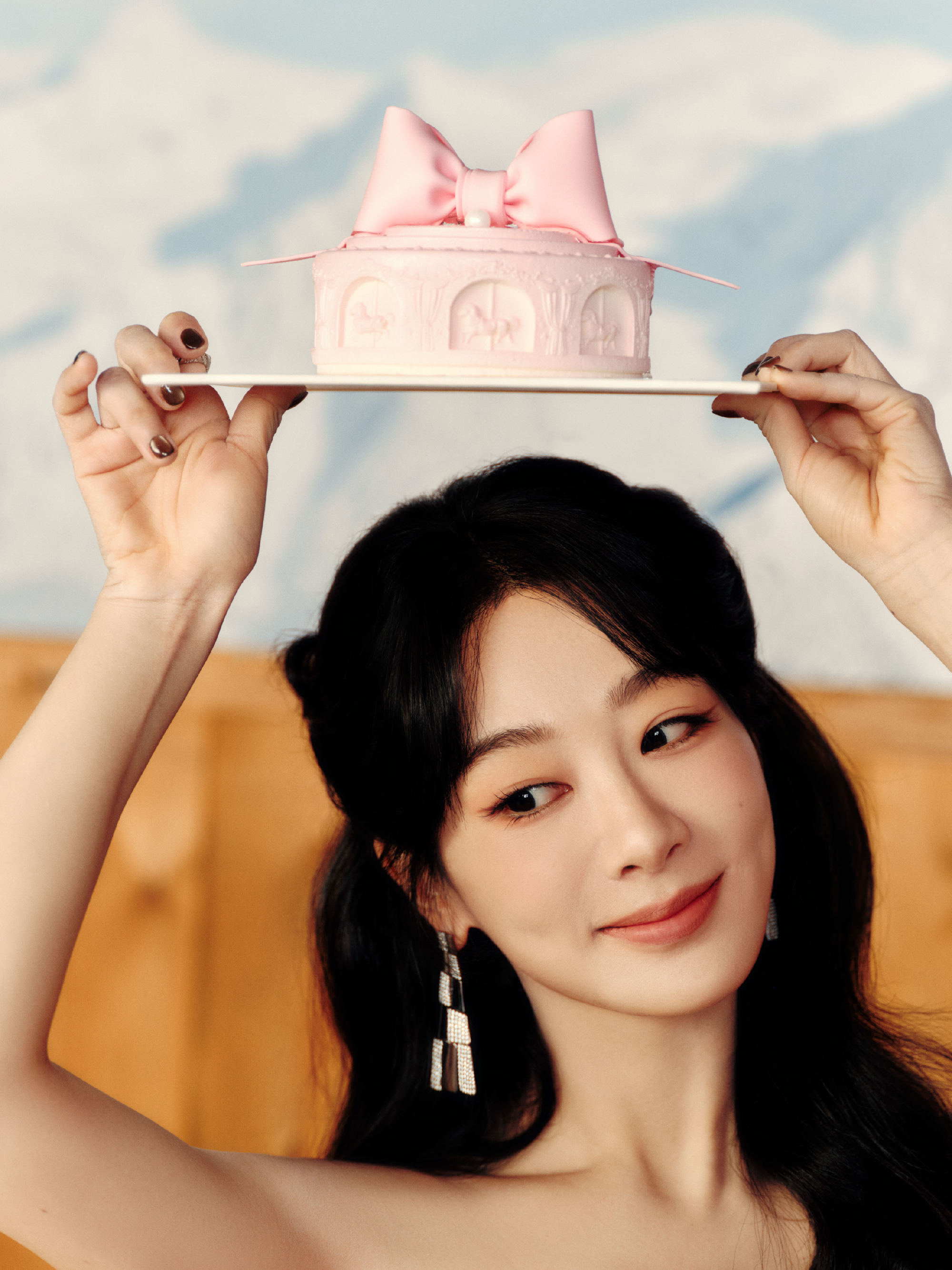 杨紫1106生日快乐原来昨天路透是在拍生日物料!!!越来越公主范了!!!