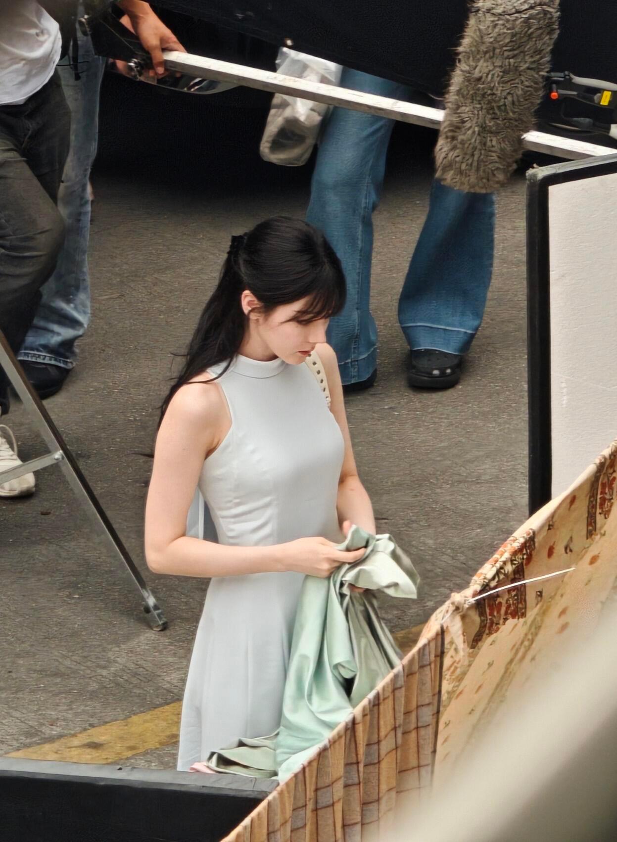 张天爱跟素人合影,胯真的好宽,大宅院似的