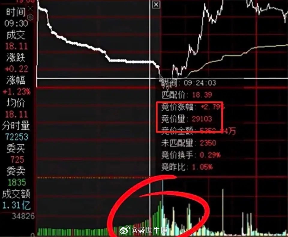 集合竞价阶段,股价从平开或小幅高开开始,逐步向上攀升,最终突破前一日的最高价,同时成交量爆发——竞价量能至少是昨日日均量的1.5倍以上,甚至达到2倍,这是主力在早盘抢筹的明确动作;