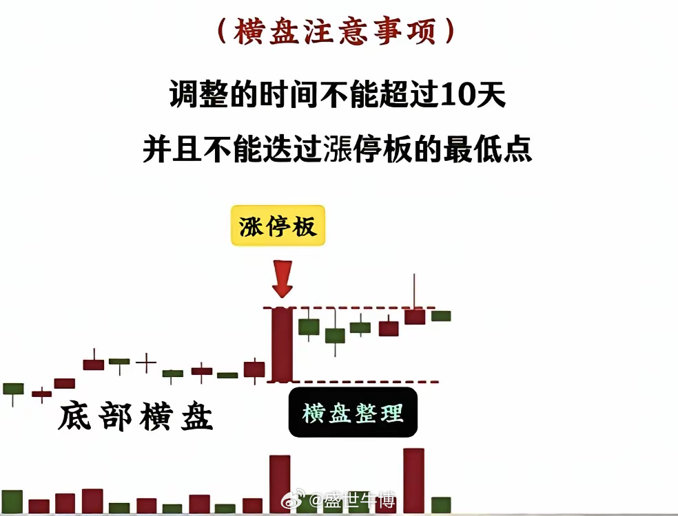 我们来看这支票,在低位横盘整理,拉出一个涨停板。这里则代表有主力资金进场,随后股价进入调整。这里要注意调整的时间不能超过十个交易日,并且调整不能跌过涨停板的最低点,随后出现一根长上影k线。