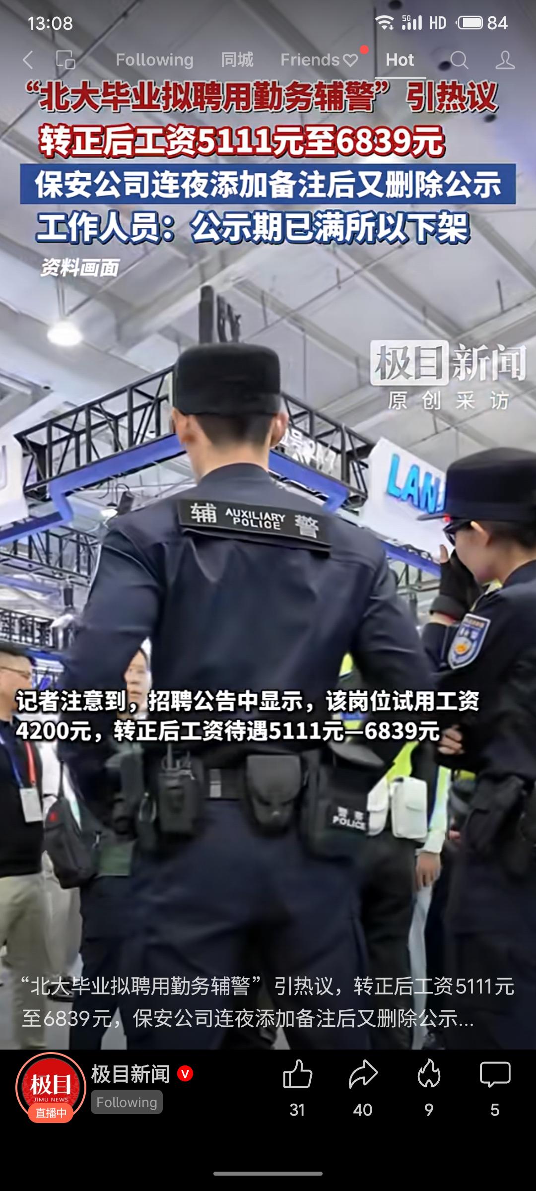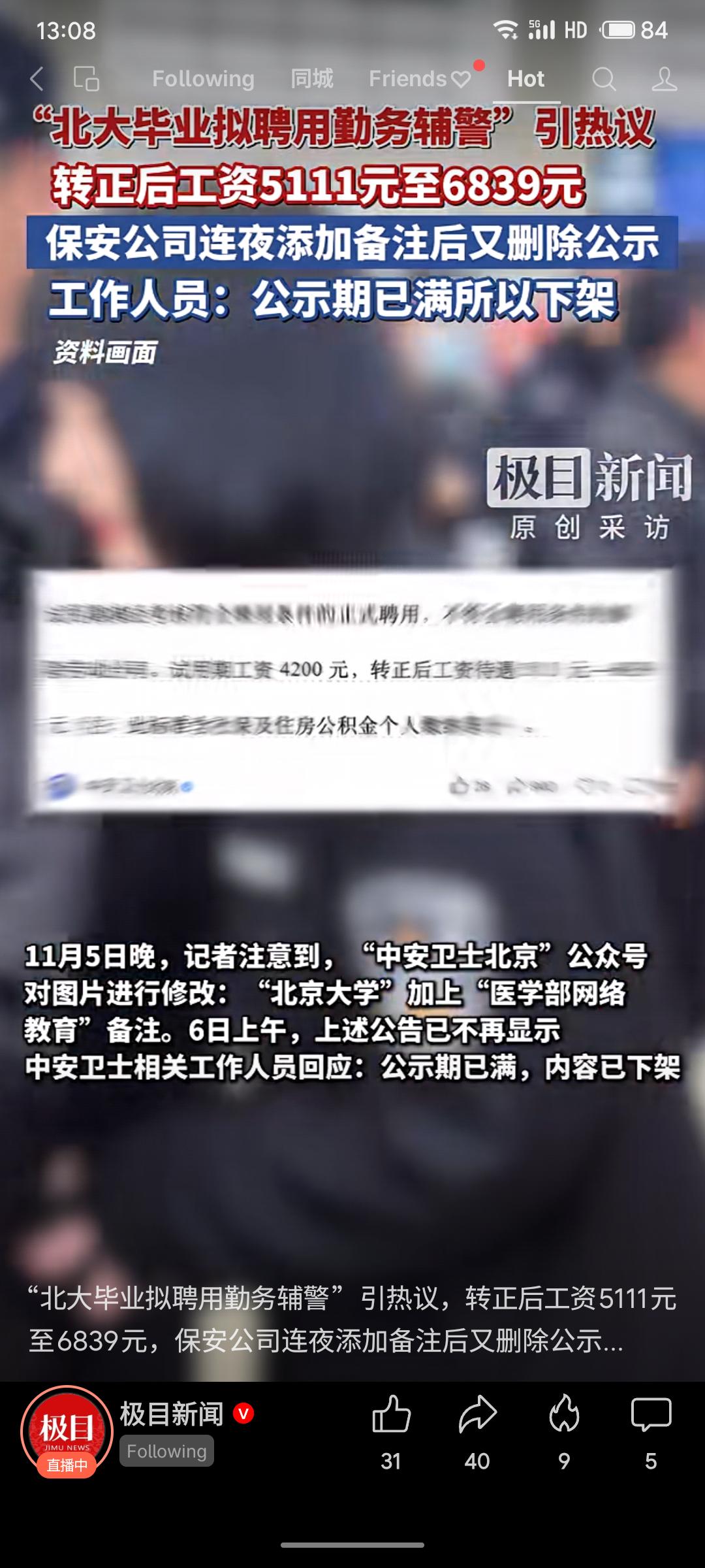 北京市公安局公交总队拟聘用勤务辅警名单中出现北京大学等名校毕业生,转正后月薪为5111元至6839元,引发热议。保安公司曾连夜添加备注,后因公示期满将名单下架。
