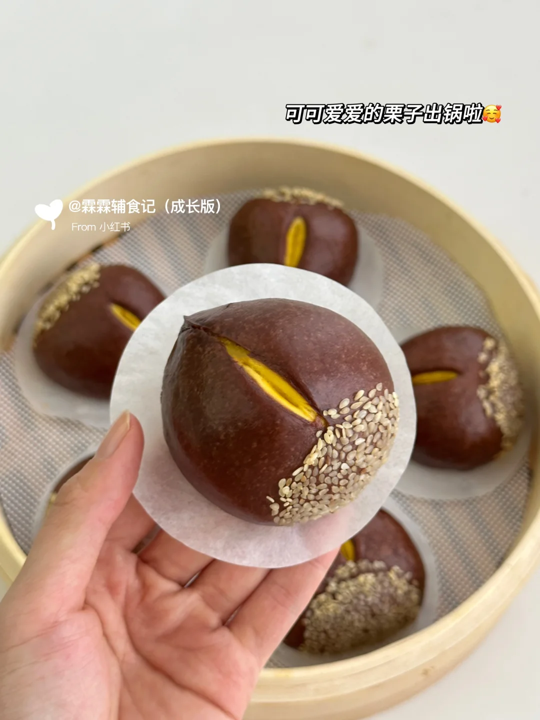 做法不难,花点时间整型就能复刻出🌰栗子的形状啦!蒸熟之后更像了!真的超可爱[偷笑R]
