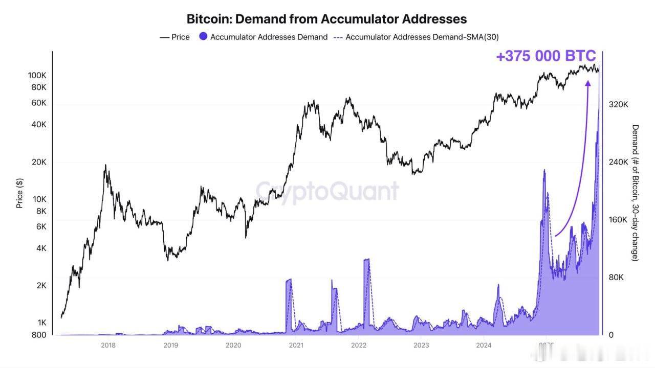 比特币累积地址刚刚达到历史最高水平,过去 30 天买入的比特币超过 375000 枚,为史上最大规模的积累浪潮,但巨鲸出货数量更多,过去30天卖出了40多万枚,远远超过买入数量!