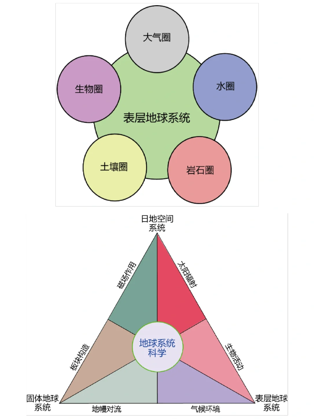 [二R]表层地球系统是一个由大气圈、水圈(包括冰冻圈)、生物圈(包括人类)、土壤圈和岩石圈构成的系统, 主要涉及气候与环境变化对生态系统和生物活动的影响. 有关影响因素不仅包括地球表层圈层之间在能量和物质上的相互作用, 而且包括太阳风和磁场等来自外部空间以及板块构造和地幔对流等来自地球内部的扰动.