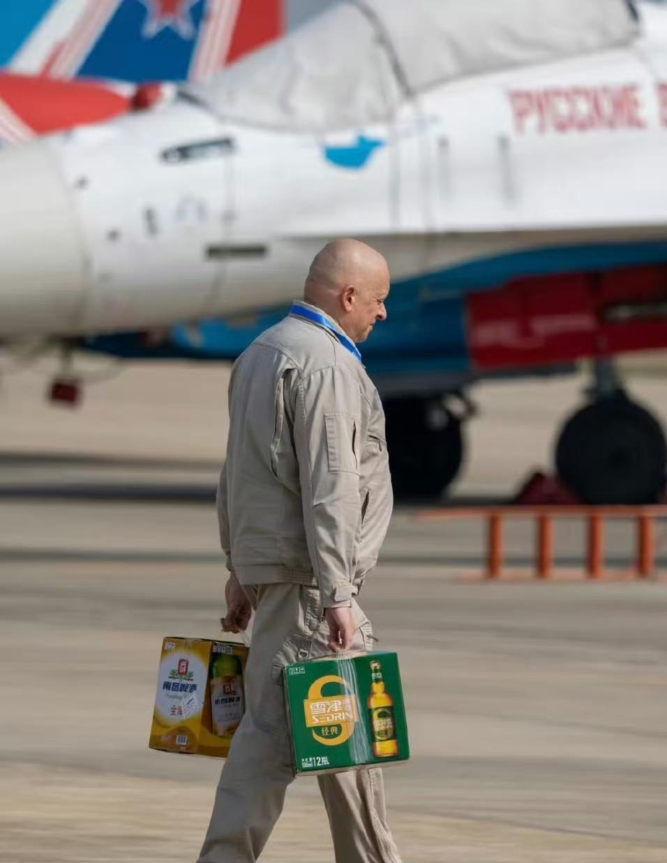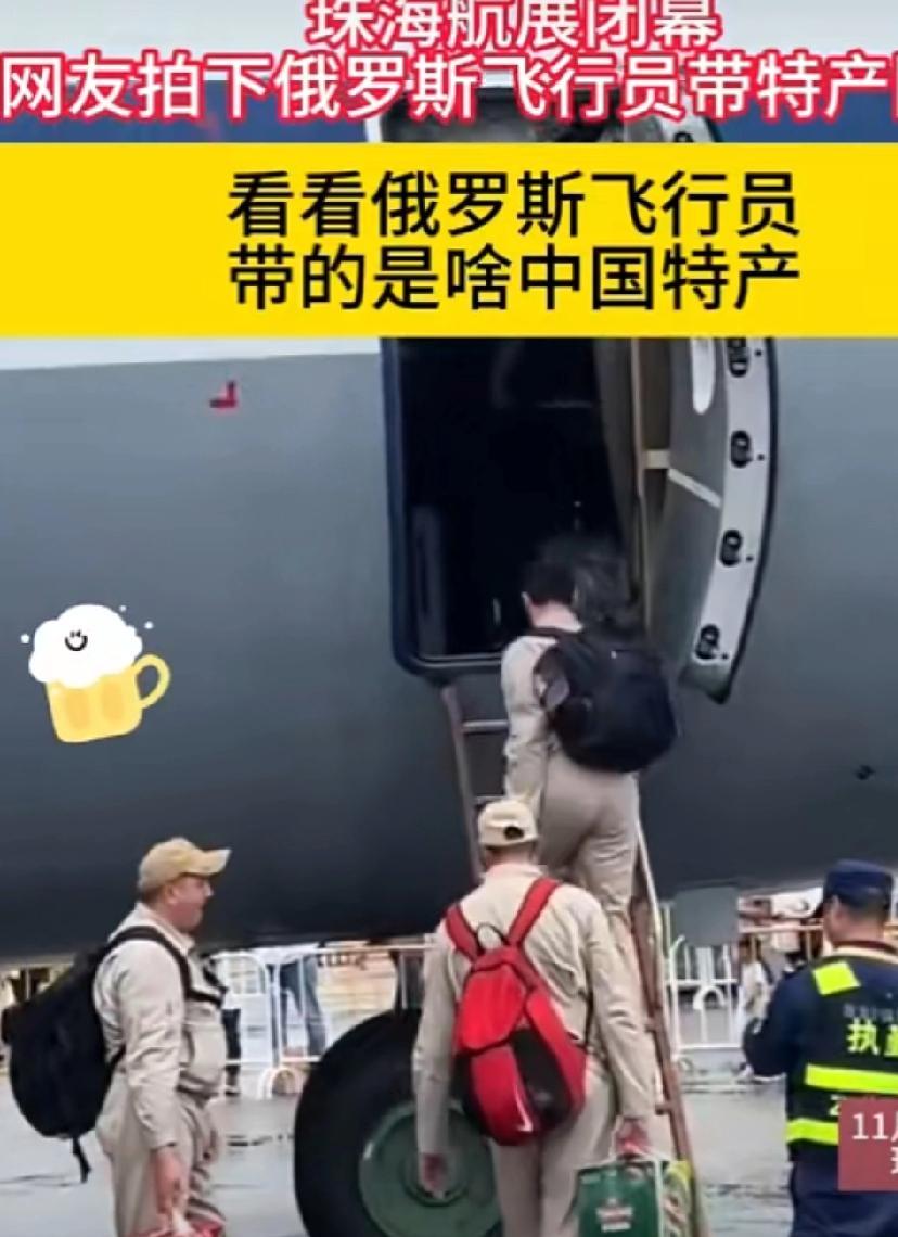 俄罗斯飞行员来南昌表演,临走带的东西让人直呼“内行”! 俄罗斯飞行员来南昌参加飞行大会表演,走的时候又开启了“采购带货”模式,啤酒成箱的买,特产按件的拎,甚至还有的带五常大米回家,就这样塞在飞机里一起带回俄罗斯。 俄罗斯飞行员来中国很少空手回,上次在珠海航展,他们表演完回家也带了啤酒等特产,回家时路过太原休整,又在太原买中国服装产品。怪不得有人说,“别人是开飞机来表演,只有俄罗斯飞行员开飞机来进货”。