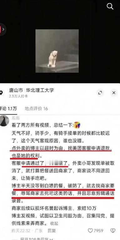 全额退款了,还想要饭,估计又在憋保研丹了吧 还是医疗卫生条件太好,本来活不下来的长大了。紧接着她该玉玉症,要死要活(在学校里这么干效果最好)学校为了平息舆论,给她保研,最后发小作文感叹心路历程,完美收官!!保研丹新思路,清晰! 应该是某个商家让她白嫖了一次饭,给了她错误的认知!吃白食吃习惯了,以为所有人都该围着她转呢!建议商家还是服软吧,XXN惹不起。商家可以大张旗鼓的送一份饭,并在学校公告栏贴出道歉信,让全校师生知道商家的诚意。 物极必反知道不?有时候怂一点不是退让,而是憋大招,从一个极端变成另一个极端!