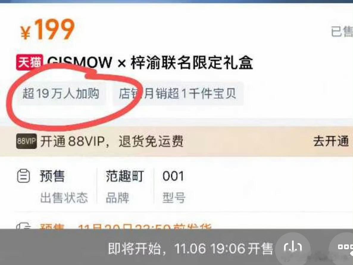 gismow加购已经19w了,抢5.2份!什么概念!估计不到50秒都得抢空!!!这个梓渝太火了!!!