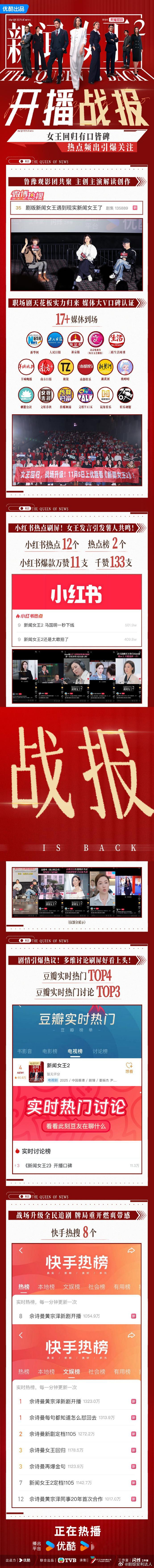 新闻女王2开播战报新闻女王slay全场爆爽上头!《新闻女王 2》剧情节奏在线,现实台词引发共鸣,热梗热搜不断,口碑热度双丰收~
