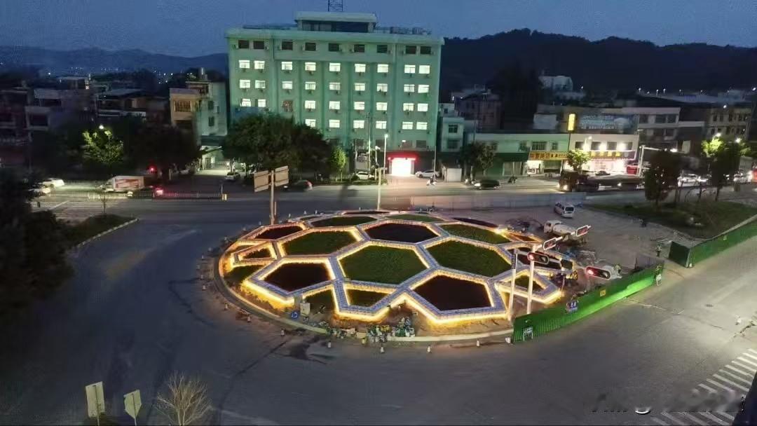 这个设计很新颖别出心裁!新陂高速出口与205国道交汇处,原来是围龙屋造型,象一堵墙遮挡司机视线!这次改造提升精心打造了一个巨大的足球草坪景观。这个造型巧妙地融入了兴宁“足球之乡”元素,体现了兴宁深厚历史文化传统和城市体育灵魂与绿色生态多重底蕴!这个独特构思精彩提升了兴宁城市形象,彰显了兴宁文化自信和特色。一个更美丽更有品位的兴宁正敞开怀抱迎接八方来客,兴宁必将更加引人注目!