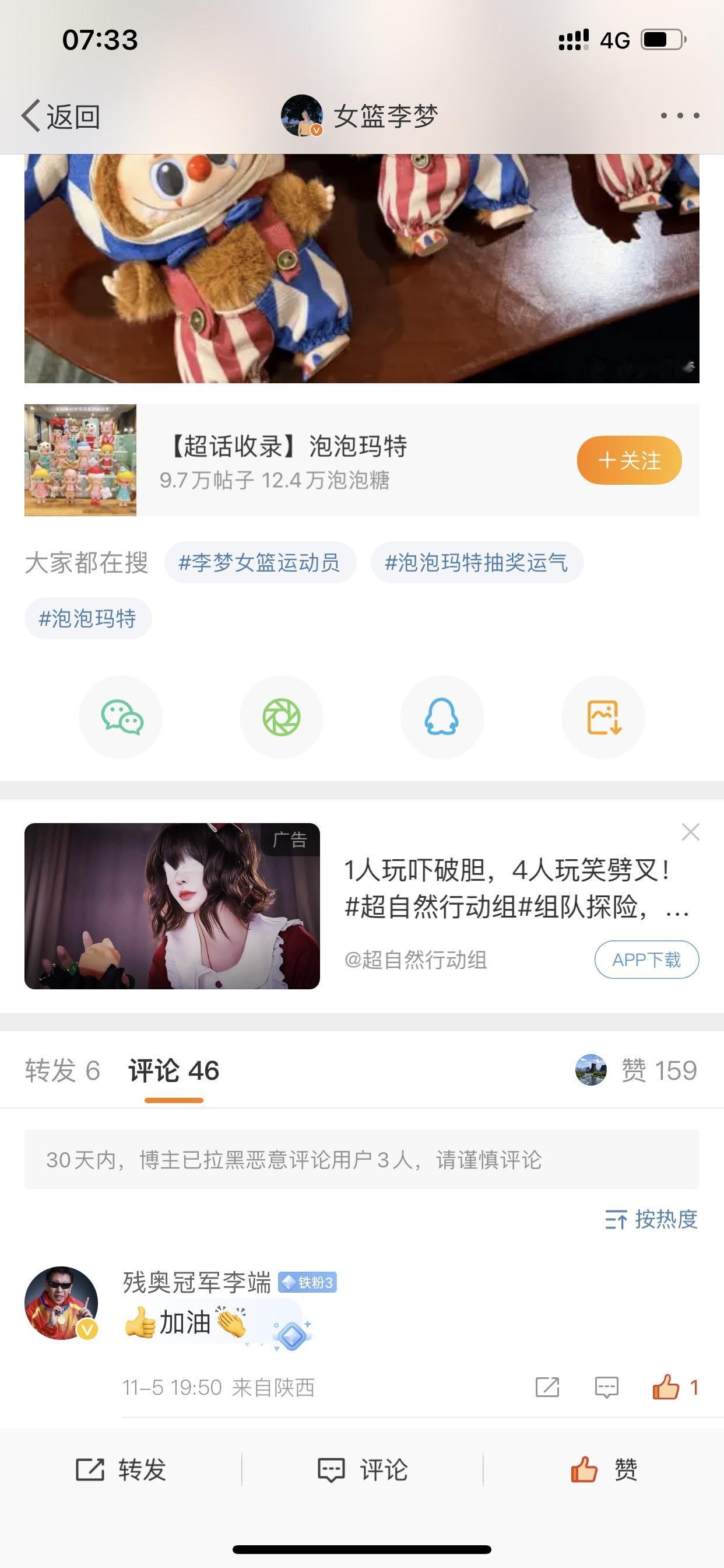 残奥会冠军李端给女篮李梦点赞、助威! 喜欢李梦,或关注李梦的人,肯定分了很多人群,但我没想到连残奥会冠军都在关注李梦 而且微博都给了李端铁粉称号,说明人家残奥会冠军关注李梦不是心血来潮,也不是随意点赞的! 由此可见,女篮李梦,她因为自身篮球水平的高超表现,让来自不同领域的很多人士,都她表示对她的喜爱。 祝愿李梦能在本届全运会登顶! 祝愿李梦未来的篮球生涯越发精彩! 祝愿李梦健健康康的给喜欢她的人持续展现她的篮球能力! 加油,李梦!