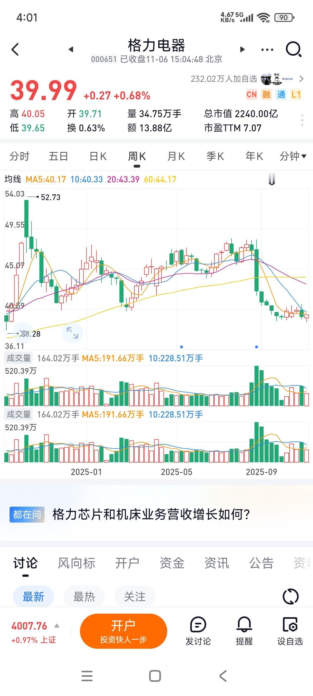 格力电器的股价,今年已经没戏了: 一是这几年业绩一直没好转,营收增长无力,且还在下滑; 二是今年的市场情绪在储能,人形机器人,固态电池与半导体等概念股上,像格力电器这种老登股,几乎没有资金进来炒作,它每天的成交量只有十几二十亿,换手率低得可怜,下跌放量,上涨缩量,能有行情都是怪事[捂脸]... 捂着它,错过的机会成本都更大了,而且未来还没有想象力...