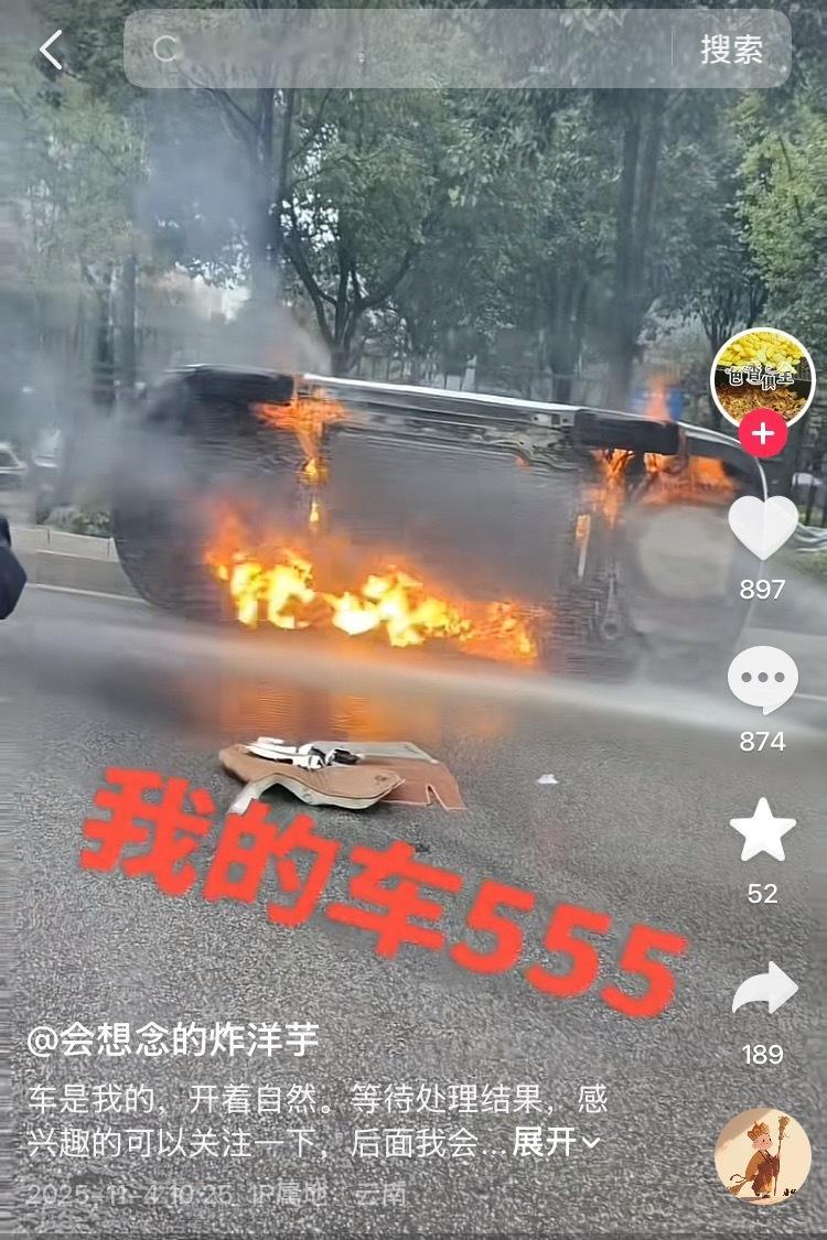 车主反馈,一辆北汽EU5行驶中非碰撞自燃,无人员伤亡(到场消防侧翻车辆便于灭火)。