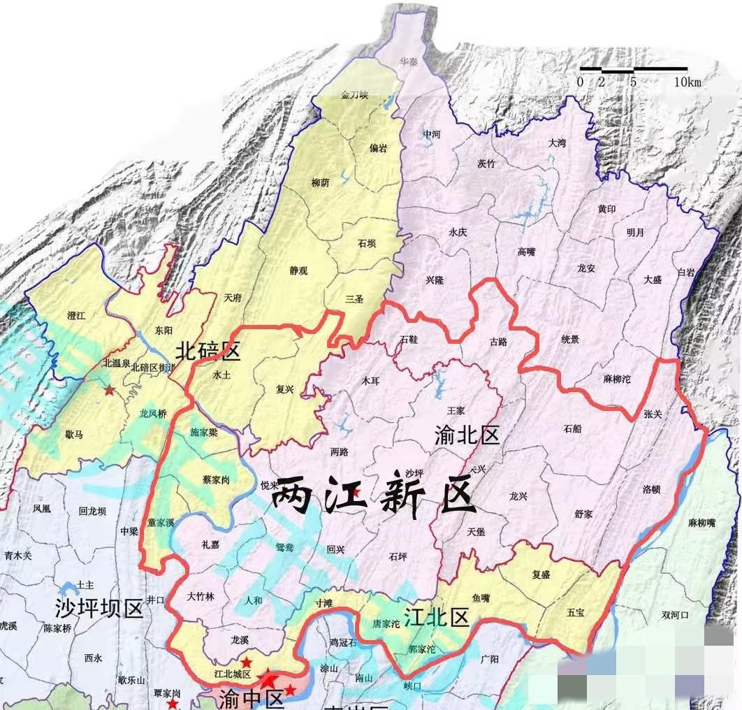 新两江新区地图!!! 江北渝北再见! 新的两江新区来了! 新两江,新北碚! 渝北用5个镇换了北碚5个街道! 2025年11月6日,重庆官宣撤销江北区、渝北区,设立全新两江新区。新两江新区管辖原江北区、原渝北区(不含5个镇)以及北碚区部分街道和镇,区政府驻地在金山街道金渝大道66号。原渝北区的5个镇则划归北碚区管辖。 这次调整后,蔡家、水土、汽博、照母山、中央公园等板块利好明显。比如蔡家、水土,身份从北碚区变为两江新区,身份证、房产证和公司注册地址都更新,对办事、资产增值有好处,招商引资也更有吸引力。两江新区未来会成为重庆经济发展主阵地,新地图值得好好研究。 重庆行政区划 南京江北新区 蔡家两江 重庆江北发展 北碚规划 两江新区遴选 浦口江北新区